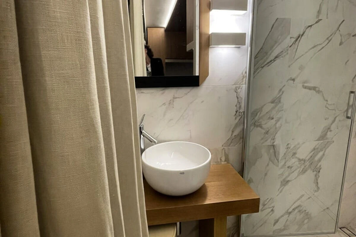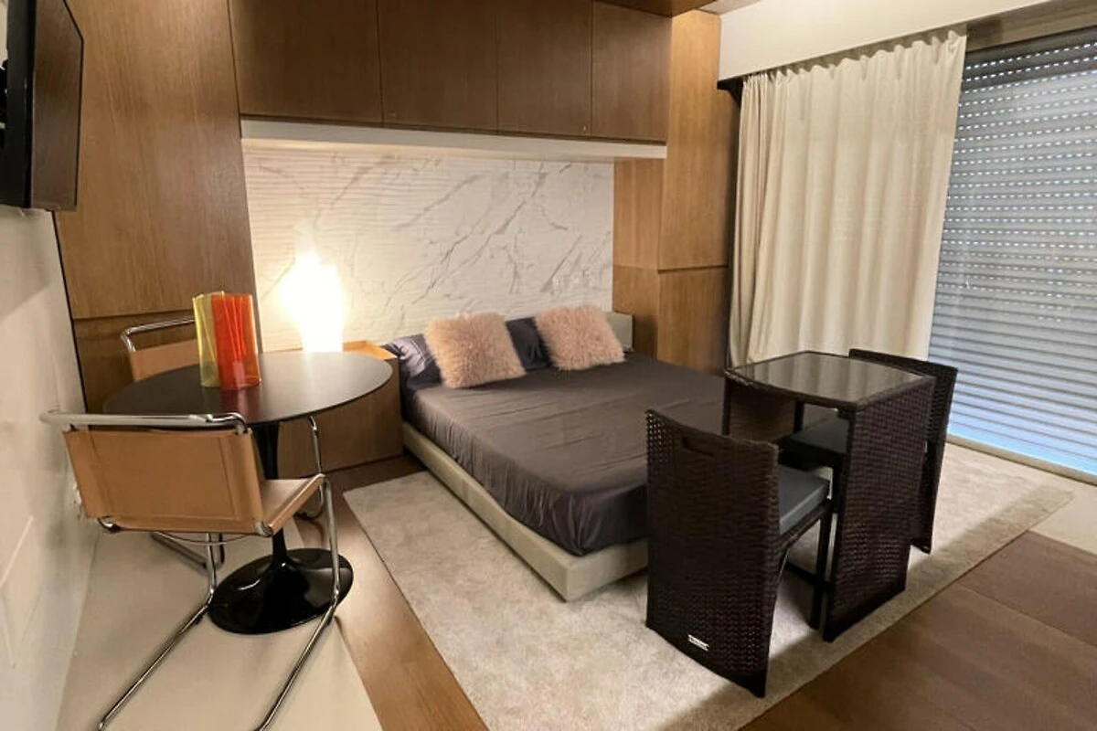 Compatto ma progettato con cura, il monolocale di 30 m² è dotato di tutto il necessario per un soggiorno confortevole. La cucina a pianta aperta è dotata di elettrodomestici moderni, tra cui piano cottura a induzione, frigorifero, forno a microonde e macchina per il caffè, rendendo facile preparare i pasti in tutta tranquillità. L'aria condizionata garantisce un fresco rifugio dalla calura estiva, mentre il Wi-Fi vi mantiene connessi. L'edificio è dotato anche di un ascensore per una maggiore comodità, rendendolo una scelta accessibile e pratica per i viaggiatori.