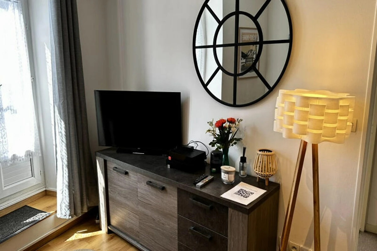 Dopo una giornata di esplorazione, rilassatevi nell'accogliente soggiorno con TV a schermo piatto, altoparlante Bluetooth e una selezione di giochi da tavolo. La connessione Wi-Fi gratuita vi terrà connessi, mentre il piccolo balcone arredato offre un angolo tranquillo per colazioni al sole o aperitivi serali. Servizi pratici come lavatrice e ferro da stiro contribuiscono alla comodità.
