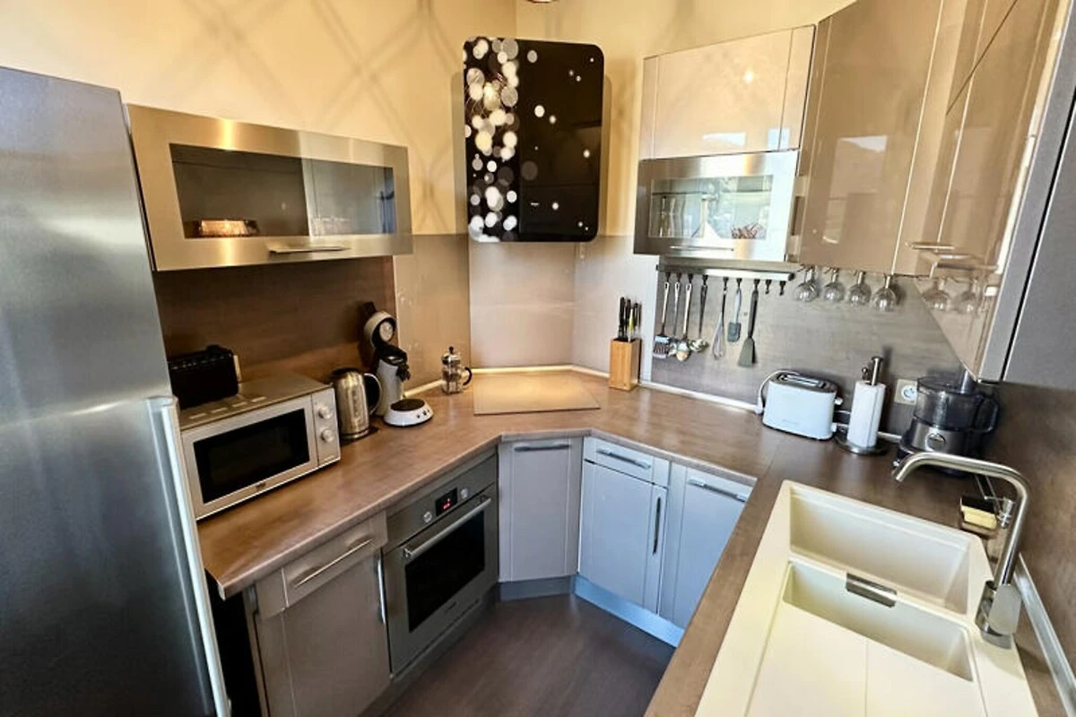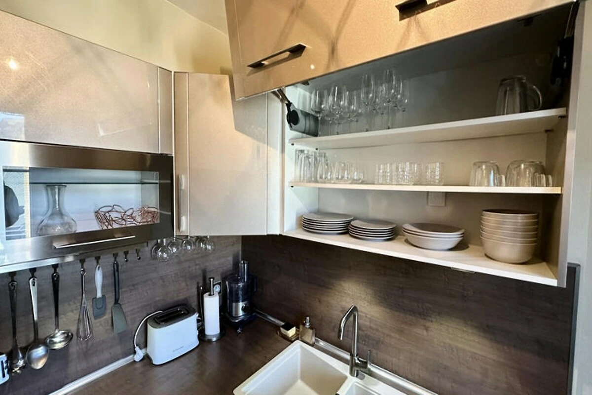 L'appartamento può ospitare comodamente fino a quattro persone, disponendo di un'accogliente camera da letto con un soffice letto matrimoniale e di un divano letto in soggiorno. Il moderno bagno, dotato di una doccia rinfrescante, offre lo spazio perfetto per rilassarsi dopo una giornata di esplorazione. La cucina separata è completamente attrezzata con piano cottura a induzione, forno, microonde, frigorifero e macchina da caffè, ideale per preparare pasti fatti in casa da gustare nel comfort del vostro rifugio in montagna. Comfort moderni come Wi-Fi, televisione e riscaldamento elettrico garantiscono un soggiorno confortevole in ogni stagione.