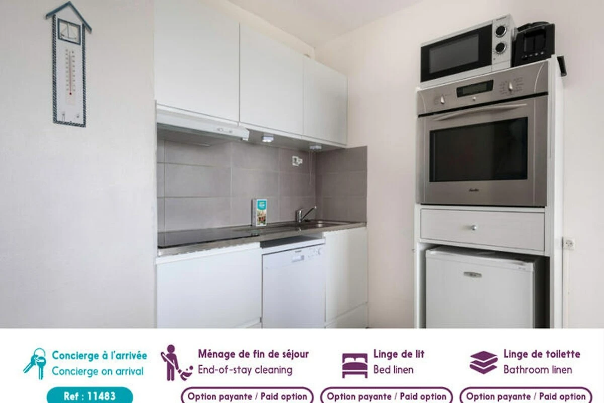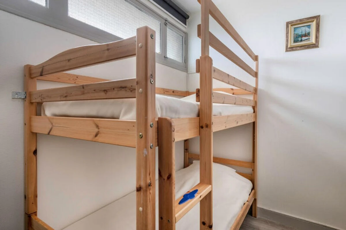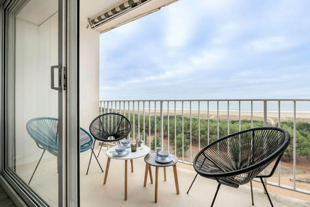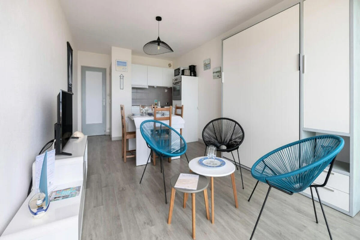 Dove la brezza marina incontra il sussurro dei pini, questo appartamento fronte mare a Saint-Brévin-l'Océan offre un rifugio idilliaco a pochi passi dalla sabbia dorata della Plage de l'Ermitage. Situata al sesto piano del residence "Mer & Soleil", la proprietà vanta una vista mozzafiato sull'oceano, sulle dune e sull'incantevole pineta, promettendo un rifugio sereno per coppie o piccoli gruppi in cerca di tranquillità e bellezza naturale. Immagina di svegliarti con il suono delle onde e di gustare il caffè mattutino sul balcone mentre il sole sorge sull'Atlantico. Progettato per ospitare fino a quattro persone, l'appartamento dispone di un'accogliente camera da letto con letti a castello e un comodo letto matrimoniale a scomparsa nel soggiorno. La zona giorno open space, dotata di TV, si collega perfettamente a una cucina completamente attrezzata, con elettrodomestici moderni come piano cottura a induzione, forno, frigorifero e lavastoviglie. Ulteriori servizi come lavatrice e asciugacapelli garantiscono un soggiorno confortevole. Gli ospiti possono inoltre usufruire di servizi comuni, tra cui una biblioteca, un tavolo da ping-pong, un minigolf e un'area giochi per bambini, rendendolo ideale per famiglie o amici. \n\nLa posizione è un paradiso per gli amanti della natura e dell'avventura. Esplorate la vicina foresta di dune di La Pierre Attelée, unica nel suo genere sulla costa atlantica, o prendete lezioni di surf sulla spiaggia a soli 100 metri di distanza. Scoprite tesori locali come lo storico menhir di Pierre Attelée, il vivace mercato estivo o l'iconica scultura Serpent d'Océan, visibile con la bassa marea. Per gli amanti del cibo, la regione offre delizie culinarie come le cozze di Bouchot, le galette di St-Michel e i gelati artigianali di La Fraiseraie. \n\nChe siate alla ricerca di relax, avventure all'aria aperta o un assaggio della cultura locale, questo grazioso appartamento è la vostra porta d'accesso al meglio di Saint-Brévin-l'Océan. Lasciate che la brezza dell'oceano e l'aria profumata di pino creino ricordi indimenticabili durante il vostro soggiorno.
