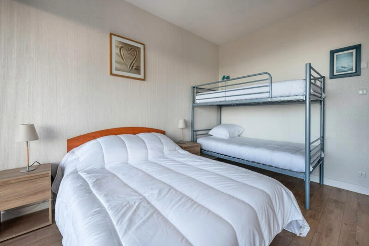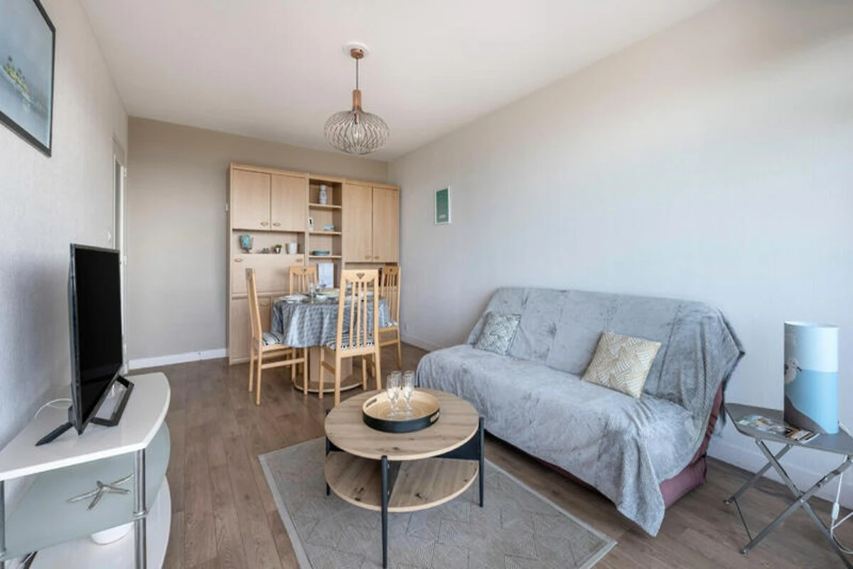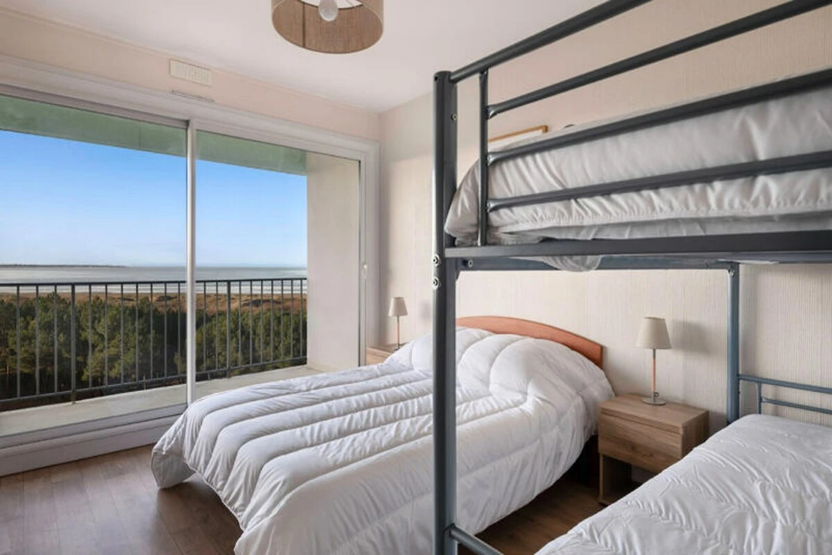 Dove la brezza atlantica incontra la sabbia dorata, questo incantevole appartamento fronte mare a Saint-Brévin-l'Océan vi invita a rilassarvi e a riconnettervi con la natura. A pochi passi dalla Plage de l'Ermitage, la sua splendida vista sull'oceano e la tranquillità circostante promettono una fuga tranquilla per coppie o piccoli gruppi in cerca di un rifugio costiero. Immaginatevi sorseggiare un caffè sul balcone mentre il sole mattutino sorge sulle dune e sui pini, o passeggiare lungo la riva con il rilassante suono delle onde. Questo è un luogo dove il relax è naturale. L'appartamento di 50 m² è progettato con cura per ospitare fino a quattro persone. Dispone di un'accogliente camera da letto con letto matrimoniale e letti a castello, oltre a un divano letto in soggiorno. La cucina separata è completamente attrezzata con elettrodomestici moderni, tra cui piano cottura a induzione, forno, frigorifero con congelatore, lavastoviglie e persino una macchina da caffè Nespresso per la vostra comodità. Il soggiorno, completo di TV, si apre su un balcone con vista mozzafiato sull'oceano. Servizi aggiuntivi come lavatrice, asciugacapelli e accesso agli spazi comuni del residence, tra cui una biblioteca, un tavolo da ping-pong e un'area giochi per bambini, garantiscono un soggiorno confortevole e piacevole. \n\nSituato a meno di 100 metri dalla spiaggia, avrete facile accesso a lezioni di surf, sentieri panoramici tra le dune e all'esclusiva Forêt de la Pierre Attelée. Le attrazioni nelle vicinanze includono il vivace mercato estivo, il centro ippico e l'affascinante centro di Saint-Brévin-l'Océan, dove potrete esplorare negozi, ristoranti ed eventi culturali locali. Avventuratevi alla scoperta dello storico porto di Pornic, della riserva naturale di Pointe de Saint Gildas o concedetevi prelibatezze regionali come le Galettes Saint Michel e il gelato di La Fraiseraie. \n\nChe siate alla ricerca di avventure o di momenti di tranquillità in riva al mare, questo appartamento offre il perfetto mix di comfort, natura e fascino costiero. Lasciate che la bellezza di Saint-Brévin-l'Océan ispiri la vostra prossima vacanza.