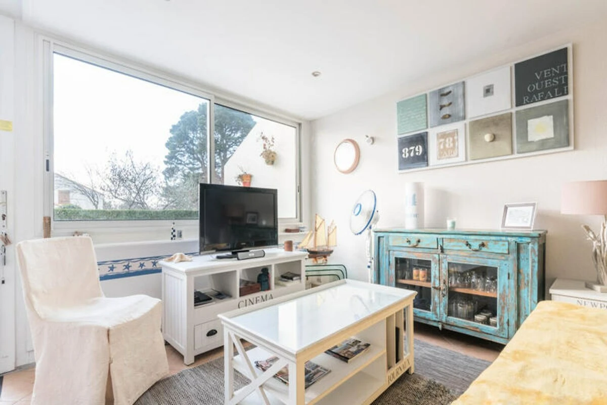 Fuggi nell'affascinante città costiera di Pornic, dove il ritmo delle maree e il fascino della Costa di Giada creano la cornice perfetta per la tua prossima fuga. Dal tuo alloggio, passeggia per le pittoresche strade, oltre l'iconico Castello di Barbablù e le eleganti ville sul mare, per scoprire il cuore pulsante di questa città storica. Con il suo mix di fascino marittimo e comfort moderni, Pornic offre un'esperienza indimenticabile per i viaggiatori in cerca di relax e avventura. \n\nQuesta accogliente casa di 55 m², classificata 1* per l'alloggio turistico arredato, è progettata per ospitare comodamente fino a 4 persone. Dotata di due camere matrimoniali al piano superiore con soffici letti 140x200, è un rifugio ideale per coppie o piccole famiglie. Il piano terra vanta una cucina a pianta aperta attrezzata con tutto il necessario, dal piano cottura in vetroceramica alla macchina per il caffè Senseo, oltre a un'accogliente zona soggiorno e pranzo con TV. Esci sulla terrazza arredata, completa di lettini prendisole, barbecue elettrico e tenda da sole, perfetta per cenare all'aperto. Ulteriori comfort includono una lavatrice, un asciugacapelli, una culla, un seggiolone e persino un frigorifero-congelatore extra per soggiorni più lunghi. \n\nImmerso nella tranquilla residenza \