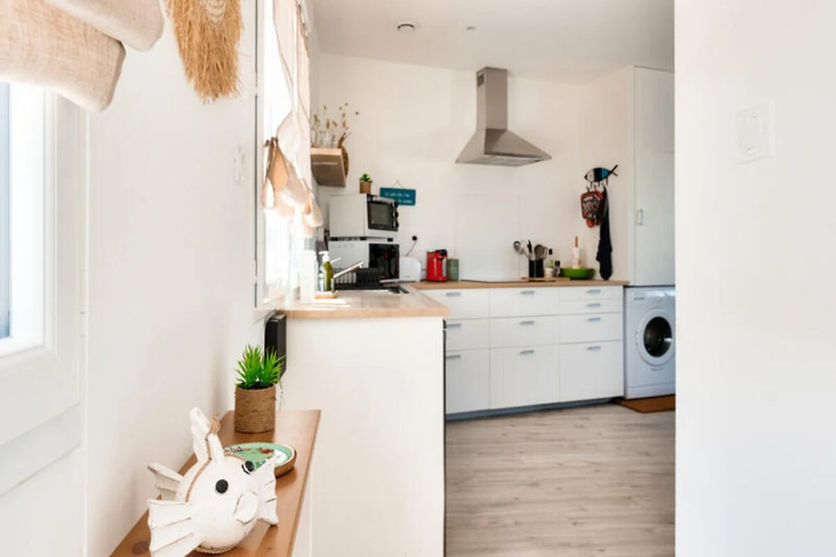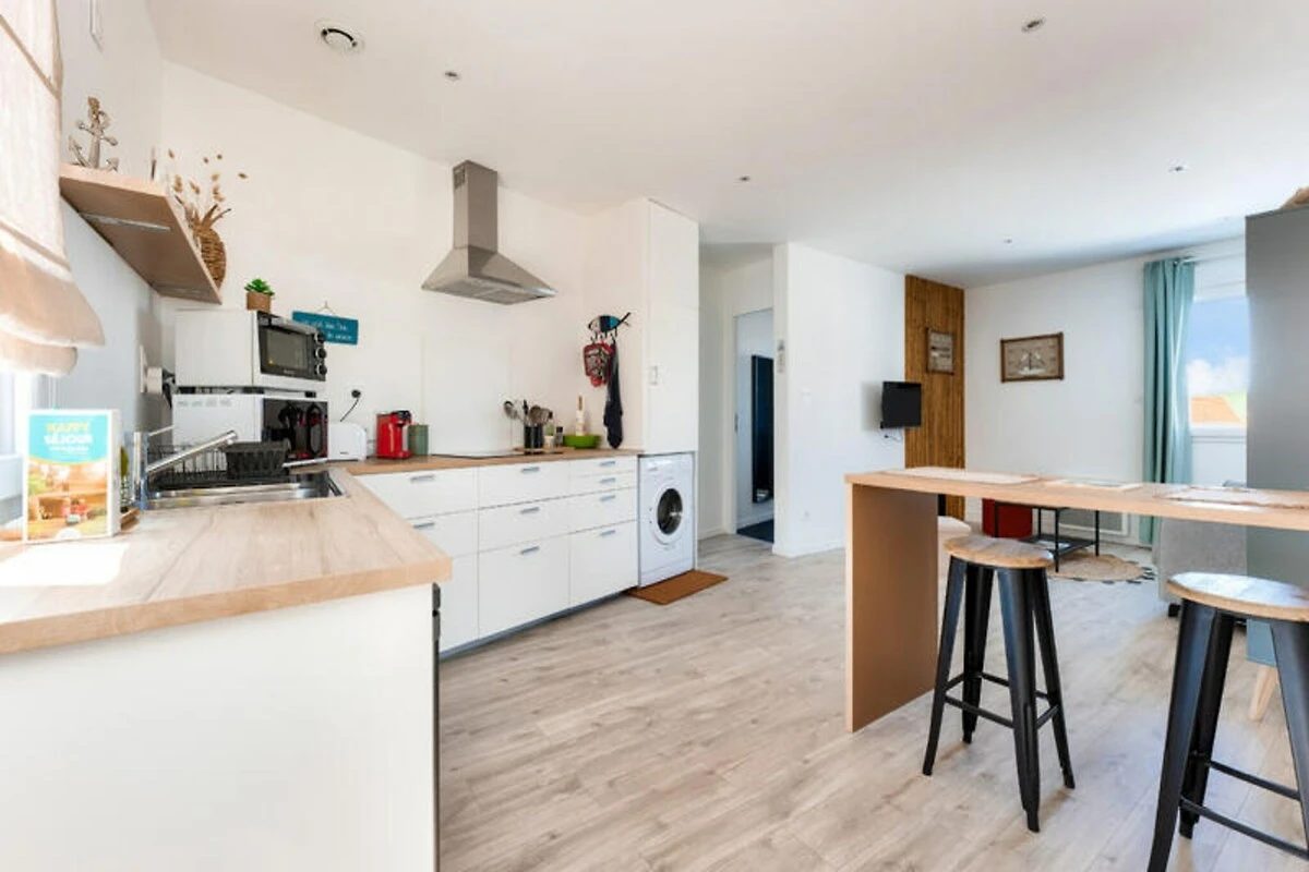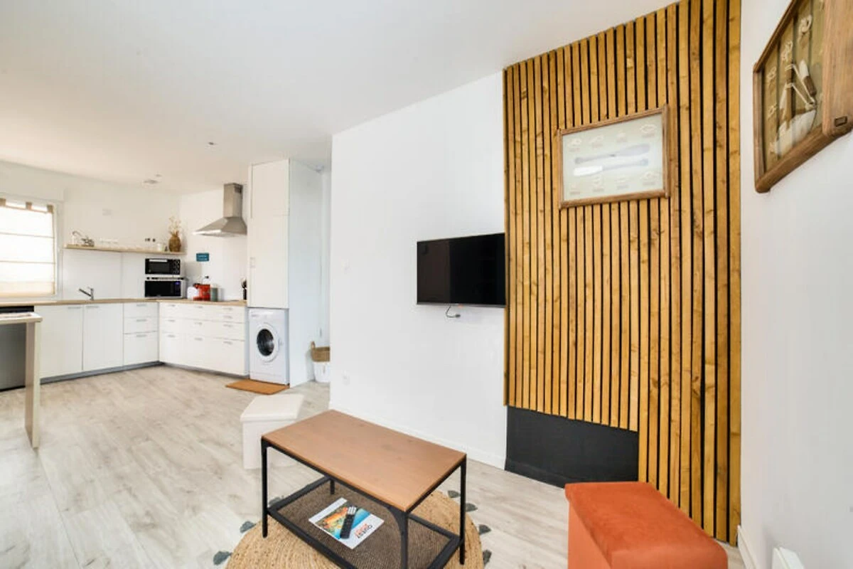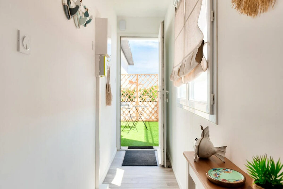 Entrate nel cuore di La Tranche-sur-Mer, dove il ritmo della vita di mare incontra il vibrante pulsare delle notti estive. Questo grazioso monolocale per due, situato sopra un vivace ristorante, offre il rifugio perfetto per chi cerca la vicinanza alla spiaggia, la vivace vita notturna e il fascino di un villaggio costiero. Fin dal vostro arrivo, la terrazza che si affaccia sulla strada e offre scorci dell'oceano vi invita a immergervi nell'atmosfera di questa destinazione dinamica. Che si tratti del suono delle onde o del brusio della vita locale, ogni momento qui sembra vivo. All'interno, il monolocale vi accoglie con una cucina a pianta aperta recentemente ristrutturata, dotata di elettrodomestici moderni, tra cui piano cottura a induzione, frigorifero, microonde, forno e altro ancora. La moderna zona pranzo, completa di tavolo alto e sgabelli da bar, è il luogo ideale per pasti intimi o conversazioni informali. Il soggiorno dispone di un comodo divano letto, perfetto per rilassarsi con un film o ricaricarsi dopo una giornata di esplorazione. Un elegante bagno con doccia, lavandino e WC aggiunge ulteriore comfort, mentre una lavatrice garantisce praticità per soggiorni più lunghi. \n\nOltre lo studio, la posizione è fantastica. A pochi passi da \