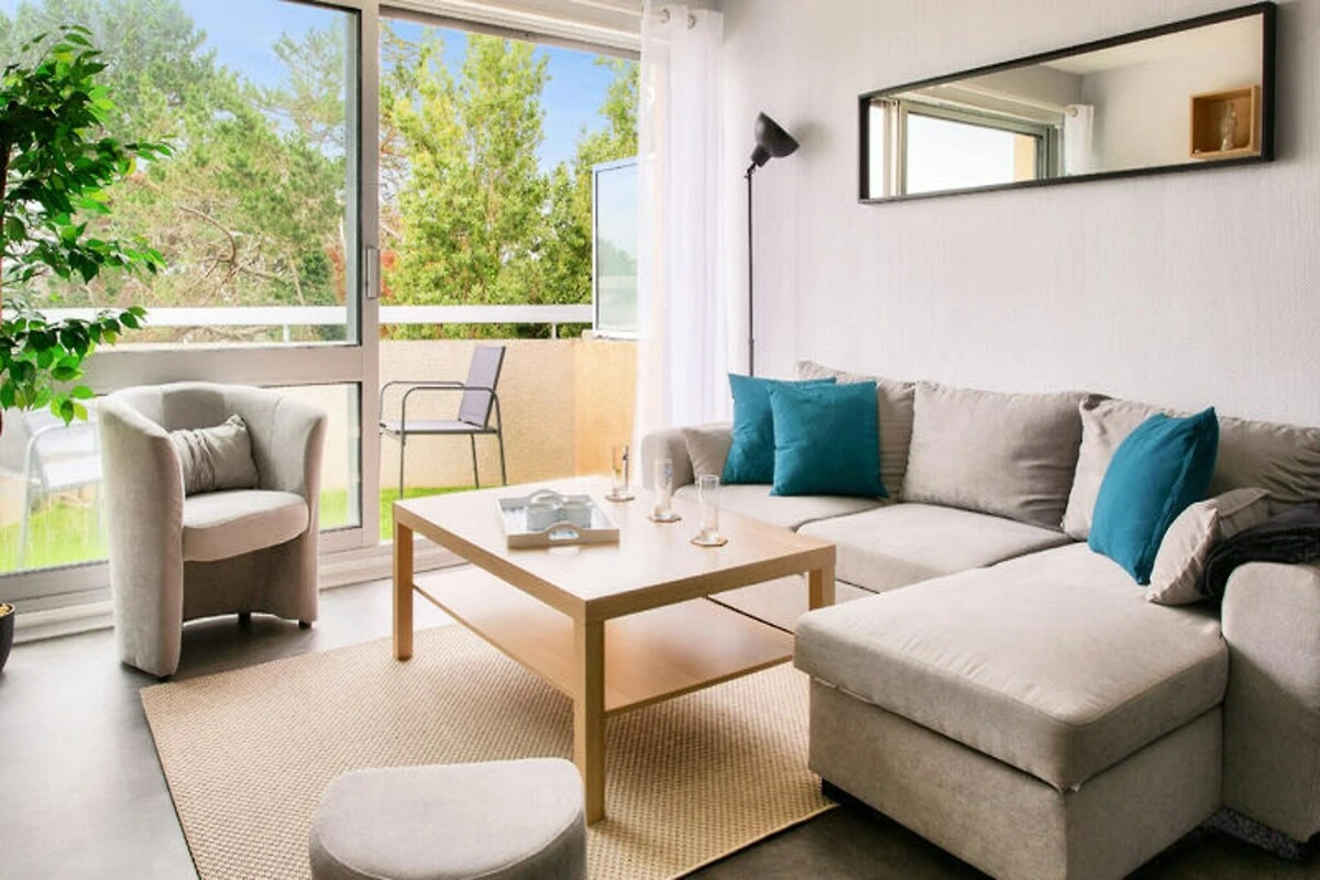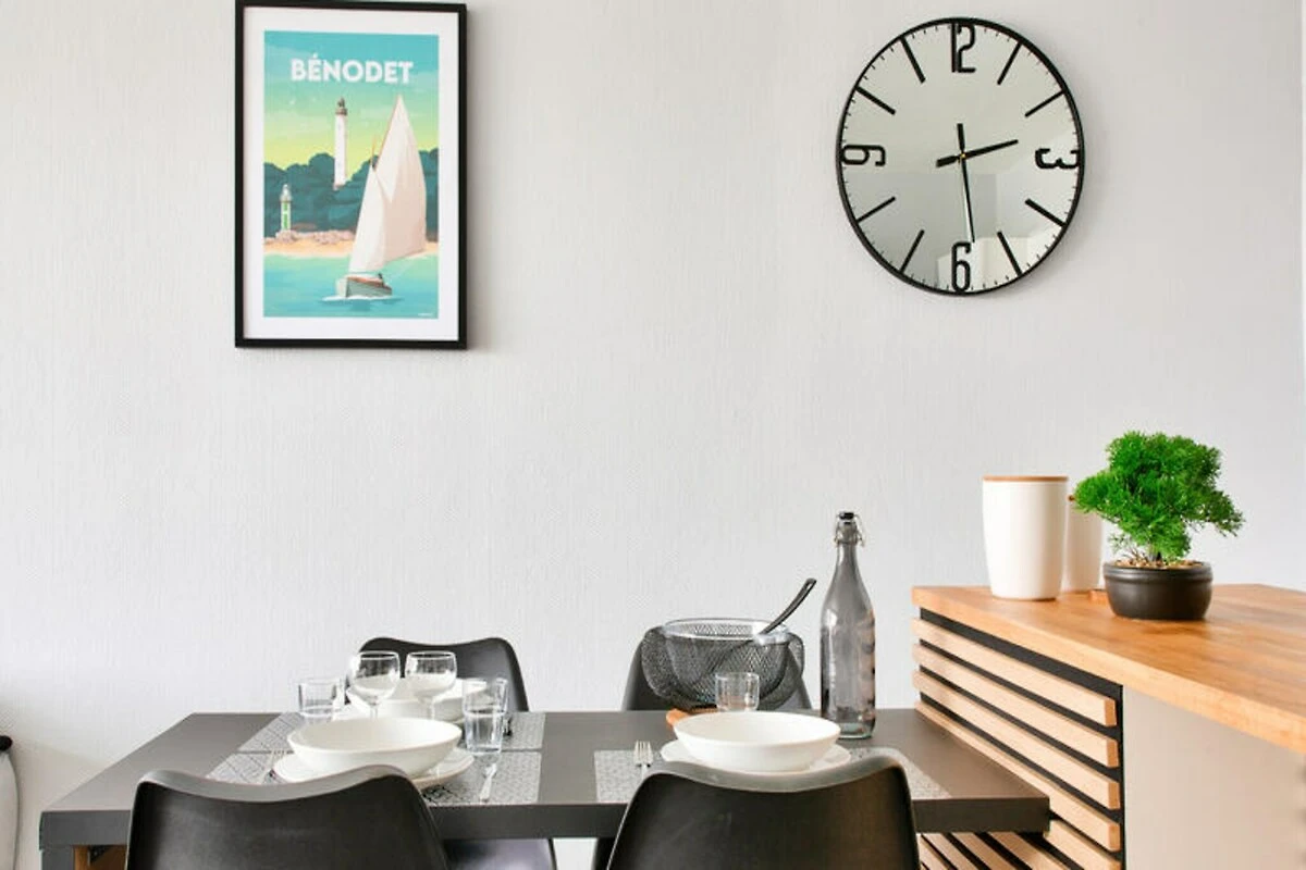 Sotto lo scintillante cielo bretone, questo appartamento all'ultimo piano di Bénodet offre un rifugio sereno a pochi minuti dalla spiaggia di sabbia fine. Con la sua terrazza con vista ininterrotta sul mare, questo incantevole rifugio vi invita a immergervi nella bellezza costiera della Bretagna. Che stiate assaporando la brezza salata o ammirando le stelle, l'ambiente è a dir poco magico. Situato dietro il casinò, l'edificio unisce tranquillità e comodità, offrendo un facile accesso alle attrazioni locali e garantendo al contempo pace e tranquillità. \n\nRecentemente ristrutturato, l'appartamento presenta un design contemporaneo che fonde comfort e stile. La sala principale è uno spazio accogliente, con una nuovissima cucina attrezzata con elettrodomestici moderni, tra cui piano cottura a induzione, forno, microonde e frigorifero con congelatore. Per una colazione tranquilla, godetevi la macchina da caffè Senseo, il bollitore e il tostapane. La zona pranzo, con il suo elegante tavolo e sedie, è perfetta per gustare i pasti in compagnia, mentre il soggiorno offre un angolo accogliente per rilassarsi sul divano letto o sulla chaise longue. L'ampia vetrata si apre su una spaziosa terrazza di 10 m², completa di zona lounge e vista mozzafiato sul mare. La camera da letto è stata progettata con cura, con un letto singolo a soppalco sopra un letto matrimoniale, offrendo una sistemazione unica e confortevole. Offre inoltre accesso al balcone, perfetto per il caffè del mattino o per il relax serale. Un moderno bagno con vasca e asciugacapelli aggiunge ulteriore comfort, mentre un WC separato si trova nell'ingresso. Situato a soli 200 metri dalla spiaggia e vicino al casinò, al centro di talassoterapia e ai ristoranti locali, questo appartamento è situato in posizione ideale per esplorare il fascino di Bénodet. Scoprite il sentiero costiero GR34, praticate il paddleboarding o semplicemente godetevi il tempo in famiglia alla Plage du Trez. Con il servizio di portineria disponibile per tutta la durata del soggiorno, questo appartamento in affitto promette una vacanza indimenticabile nel cuore della Bretagna.