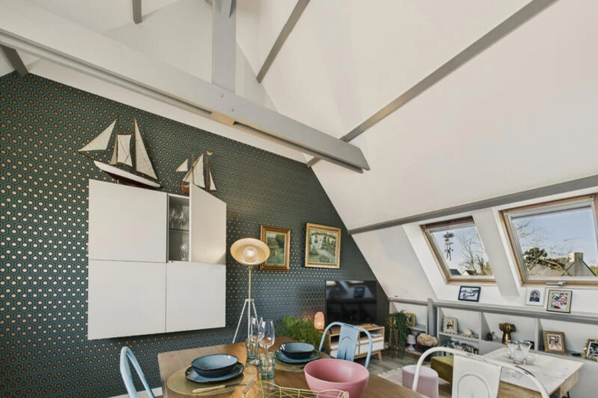 Nel cuore della pittoresca cittadina di Fouesnant, questo grazioso appartamento arredato di 65 m² vi invita a sperimentare il perfetto connubio tra comfort e fascino costiero. Che stiate pianificando una fuga romantica o un tranquillo rifugio per due o tre, questa residenza offre un rifugio sereno a pochi minuti dalle splendide spiagge del Finistère meridionale. Immaginate di iniziare la giornata con la colazione sull'ampio balcone soleggiato o di rilassarvi dopo una giornata di avventure al mare con la dolce brezza dell'oceano a farvi compagnia. Grazie alla sua posizione tranquilla in una residenza tranquilla, questa è la base ideale per esplorare gli incantevoli paesaggi della Bretagna. \n\nEntrate per scoprire un luminoso e moderno spazio abitativo di circa 40 m², progettato sia per il relax che per la praticità. La cucina a pianta aperta è completamente attrezzata con tutto il necessario, dal frigorifero e forno al microonde e alla lavastoviglie, per una preparazione dei pasti senza sforzo. Un'accogliente zona pranzo per quattro persone e un confortevole soggiorno con un morbido divano, un tavolino e un televisore creano un'atmosfera accogliente per le serate in casa. La camera da letto dispone di un lussuoso letto king-size e di un televisore, mentre il divano letto in soggiorno offre ulteriore spazio per un terzo ospite. Un elegante bagno con doccia e WC separato completa la disposizione, offrendo tutti i comfort di casa. \n\nSituato a soli 3 km dalla costa, vi troverete a breve distanza dalle acque turchesi e dalle spiagge sabbiose della spiaggia di Cap Coz. Esplorate l'affascinante quartiere di Beg-Meil, imbarcatevi in un'avventura in barca a vela alle Isole Glénan o assaporate le prelibatezze bretoni locali nelle vicine crêperie. Per i viaggiatori più attivi, il campo da golf di Cornouaille e il centro nautico di Fouesnant Cornouaille sono a pochi minuti di distanza, mentre le famiglie apprezzeranno il vicino parco divertimenti Glaz Aventures. Con parcheggio privato, Wi-Fi e servizio concierge a vostra disposizione, ogni dettaglio è stato attentamente studiato per rendere il vostro soggiorno indimenticabile. Che siate alla ricerca di relax in riva al mare o di un'esplorazione attiva delle bellezze naturali della Bretagna, questo appartamento offre il punto di partenza perfetto per il vostro viaggio. Lasciatevi conquistare dai paesaggi incontaminati, dalla vivace atmosfera marina e dal fascino autentico di Fouesnant.