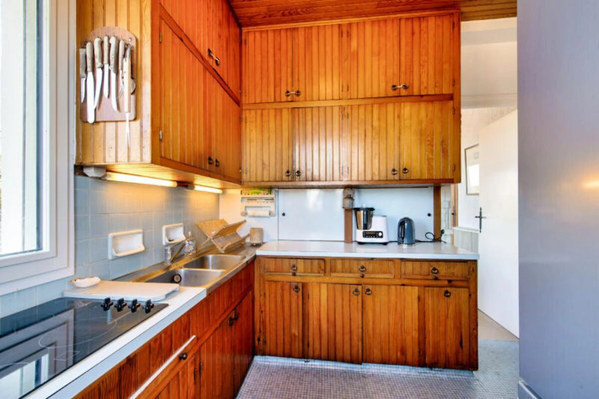 Dove le acque color smeraldo dell'Aber Benoît incontrano le sabbie dorate di Saint-Pabu, "La Bouline" vi invita a vivere il fascino senza tempo della costa settentrionale della Bretagna. Questa spaziosa casa di famiglia degli anni '70, immersa in un tranquillo contesto costiero, offre accesso diretto alla spiaggia tramite una scala privata nascosta ai margini del rigoglioso giardino. Perfetta per riunioni di famiglia o una fuga con gli amici, la proprietà può ospitare fino a 11 persone, unendo il comfort alla tranquillità della natura. Immaginate mattine scandite dal suono delle onde, pomeriggi trascorsi a esplorare i sentieri costieri e serate a gustare ostriche fresche sotto un cielo stellato. \n\nEntrate e scoprite un ambiente caldo e accogliente, progettato per il relax e la convivialità. L'ampia zona lounge, completa di comodi divani e poltrone, è il luogo ideale per serate indimenticabili. Condividete i pasti al tavolo da pranzo per 11 persone o godetevi una cena all'aperto sulla soleggiata terrazza attrezzata con barbecue. La cucina separata e completamente attrezzata vi assicura tutto il necessario per preparare deliziosi pasti, dalla macchina per il caffè a stantuffo alla lavastoviglie. La zona notte dispone di quattro camere da letto al piano terra, tra cui una suite padronale con bagno privato, una divertente cameretta per bambini con letti a castello e camere aggiuntive con letti matrimoniali e singoli. Al piano superiore, uno spazio versatile offre ulteriori opzioni per dormire, giochi e una scrivania per i momenti di tranquillità. Oltre la proprietà, Saint-Pabu svela i suoi tesori. Passeggiate fino alla spiaggia di Béniguet, assaporate i frutti di mare locali nei ristoranti vicini o lanciatevi in avventure lungo il sentiero costiero GR34. Gli appassionati di sport acquatici troveranno Aber Benoît ideale per il kayak e la vela, mentre i golfisti possono giocare al Pen Ar Bed Golf Course a soli 16 km di distanza. Le famiglie adoreranno il vicino parco divertimenti e gli amanti della natura potranno immergersi nelle dune selvagge e nei paesaggi dell'estuario. Con servizi di concierge disponibili durante tutto il soggiorno, ogni dettaglio è curato nei minimi dettagli. \n\nChe siate alla ricerca di relax o di esplorazione, 'La Bouline' offre un'autentica fuga bretone, dove la bellezza incontaminata e il fascino locale creano ricordi indimenticabili.