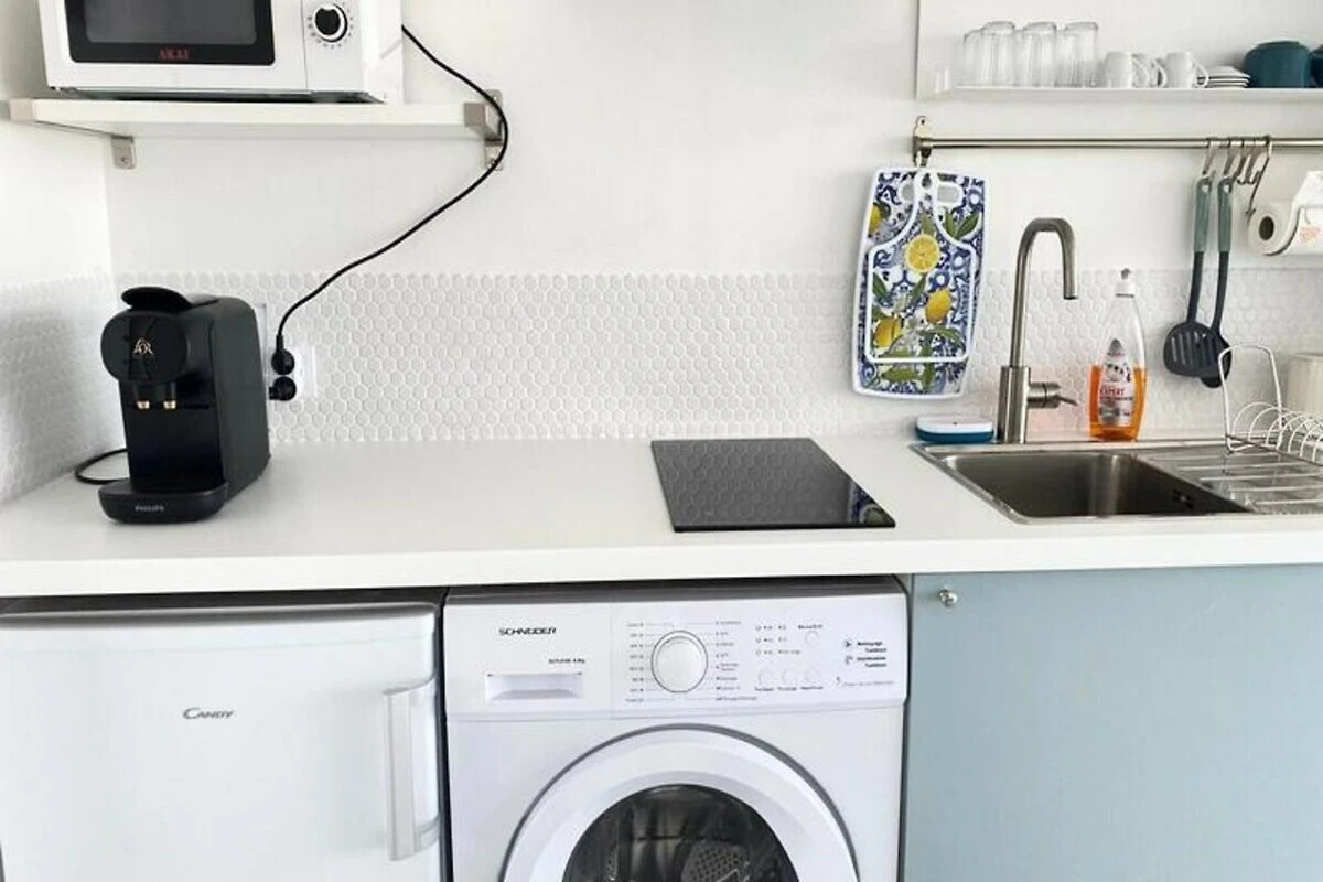 All'interno, il monolocale di 23 m² è progettato con cura per massimizzare il comfort e la praticità. La zona giorno dispone di un comodo divano letto e di un grande televisore, perfetti per rilassarsi dopo una giornata di esplorazione. La cucina completamente attrezzata vi invita a preparare pasti freschi con ingredienti locali, mentre il bagno moderno assicura un inizio o una fine di giornata rigeneranti. Il balcone di 7 m², completo di tavolo da pranzo e sedie, offre il luogo perfetto per mangiare all'aperto con una splendida vista sul mare.