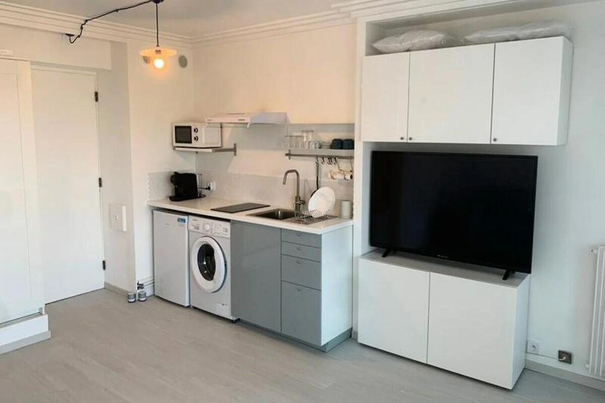 Dove il luccicante Mediterraneo incontra il fascino della Costa Azzurra, questo luminoso monolocale splendidamente ristrutturato offre un rifugio idilliaco per i viaggiatori in cerca di sole, mare e serenità. Grazie alla sua posizione privilegiata di fronte alla spiaggia di Salis, gli ospiti possono godere di viste mozzafiato sulle acque azzurre, sul centro storico di Antibes e sul lussureggiante Cap d'Antibes. Che sorseggiate un caffè sul balcone o che passeggiate sul lungomare, ogni momento qui sembra una cartolina che prende vita.