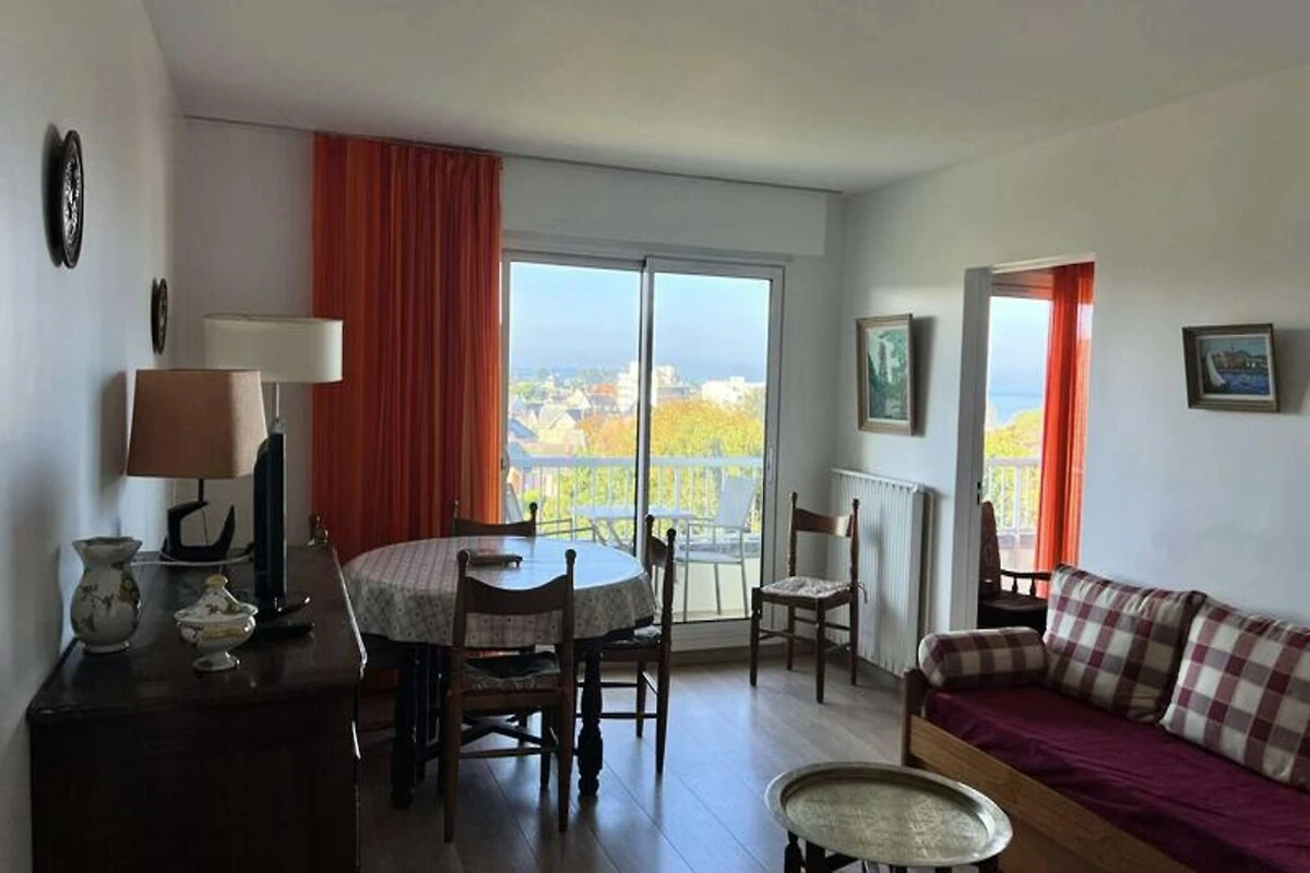 Con vista sulla pittoresca cittadina di Erquy e sul mare scintillante, questo delizioso appartamento offre un rifugio sereno nel cuore della splendida regione delle Côtes d'Armor, in Bretagna. Con la sua atmosfera accogliente e gli interni curati nei minimi dettagli, è il rifugio perfetto per coppie o piccole famiglie che cercano un mix di comfort e fascino costiero. Svegliatevi con la dolce brezza marina e gustate il caffè del mattino sul balcone arredato, dove la vista è a dir poco mozzafiato.