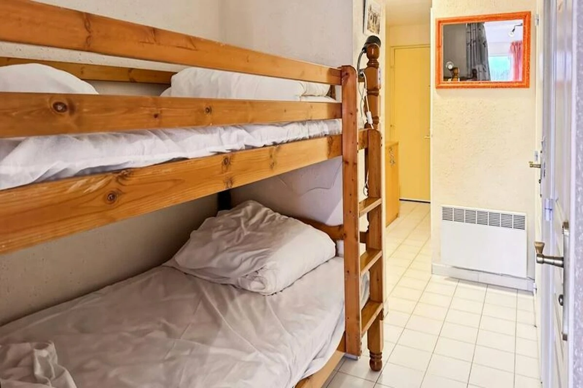 Nel cuore della tranquilla regione della Laguna Blu, questo grazioso appartamento vi invita a vivere la bellezza del sud della Francia con comfort e stile. Immaginate di svegliarvi con la dolce brezza mediterranea, circondati da paesaggi lussureggianti e con la promessa di una giornata ricca di esplorazione e relax. Che siate qui per una vacanza in famiglia o una fuga romantica, questo accogliente rifugio offre la base perfetta per creare ricordi indimenticabili. Con una superficie di 25 m² progettata con cura, l'appartamento può ospitare comodamente fino a sei persone. Dispone di un angolo cottura ben attrezzato, una camera da letto con letto matrimoniale, due letti a castello e un divano letto nel soggiorno, garantendo a tutti un luogo accogliente in cui riposare. Durante i mesi più caldi, da giugno a metà settembre, potrete approfittare dell'invitante piscina del residence, perfetta per rinfrescanti tuffi sotto il sole. Un parcheggio privato con cancello sicuro aggiunge comodità, permettendovi di esplorare la regione senza preoccupazioni. Ulteriori opzioni come il noleggio di lenzuola e asciugamani, soggiorni che accettano animali domestici e servizi di pulizia di fine soggiorno garantiscono un'esperienza senza pensieri. \n\nSituato vicino a tutti i servizi, questo appartamento offre un facile accesso ai tesori della zona della Laguna Blu. Scoprite incantevoli villaggi, mercati locali e sentieri panoramici che mettono in mostra la bellezza naturale della regione. Che vogliate passeggiare lungo la costa o assaporare le prelibatezze regionali, la zona offre infinite opportunità di avventura e relax. \n\nScegliete questo delizioso appartamento per la vostra prossima vacanza e immergetevi nel calore e nel fascino del sud della Francia. Con la sua atmosfera accogliente e la posizione privilegiata, è la cornice perfetta per una vacanza indimenticabile.