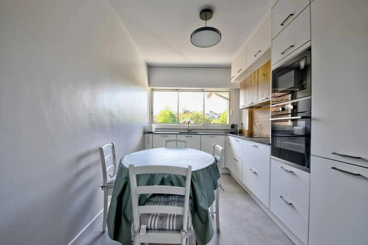 Immagina di svegliarti con il suono delle onde e il profumo della brezza marina in questa lussuosa residenza sul mare ad Arcachon, a pochi passi dalle spiagge incontaminate di Pereire. Situato all'ultimo piano di un elegante edificio con accesso privato alla spiaggia, questo spazioso appartamento offre una vista mozzafiato sulla baia e un rifugio sereno per famiglie o gruppi in cerca di un raffinato rifugio costiero. La residenza combina il comfort moderno con il fascino della costa atlantica francese, creando l'ambiente perfetto per ricordi indimenticabili. \n\nInternamente, l'appartamento vanta un'ampia zona giorno e pranzo di 50 m² con tripla esposizione, che inonda lo spazio di luce naturale e offre accesso sia a un balcone esposto a sud che a una terrazza esposta a nord. La cucina completamente attrezzata dispone di elettrodomestici di alta gamma, tra cui frigorifero, lavastoviglie, lavatrice e forno, garantendo tutte le comodità di casa. Le quattro camere da letto ben arredate, ciascuna con il proprio balcone, offrono una sistemazione flessibile per un massimo di otto persone. La suite padronale include un bagno privato e un balcone, mentre le camere da letto aggiuntive offrono un mix di letti singoli, matrimoniali e estraibili per soddisfare tutte le esigenze. Due bagni moderni e servizi igienici separati aggiungono comfort e funzionalità allo spazio. \n\nUscite sull'ampia terrazza, completa di mobili da giardino e tenda da sole retrattile, dove potrete cenare all'aperto o semplicemente rilassarvi ammirando la vista panoramica sulla baia. Con due posti auto sotterranei, un ascensore e il Wi-Fi, ogni dettaglio è stato progettato con cura per un soggiorno senza stress. \n\nSituato nel cuore di Arcachon, questo residence offre un facile accesso alle attrazioni della regione, dal vivace centro città alla famosa Duna di Pilat e agli affascinanti villaggi di ostriche. Che stiate passeggiando lungo le rive sabbiose, esplorando le vicine pinete o gustando pesce fresco in un bistrot locale, questo paradiso sul mare è la vostra porta d'accesso al meglio della costa atlantica francese.