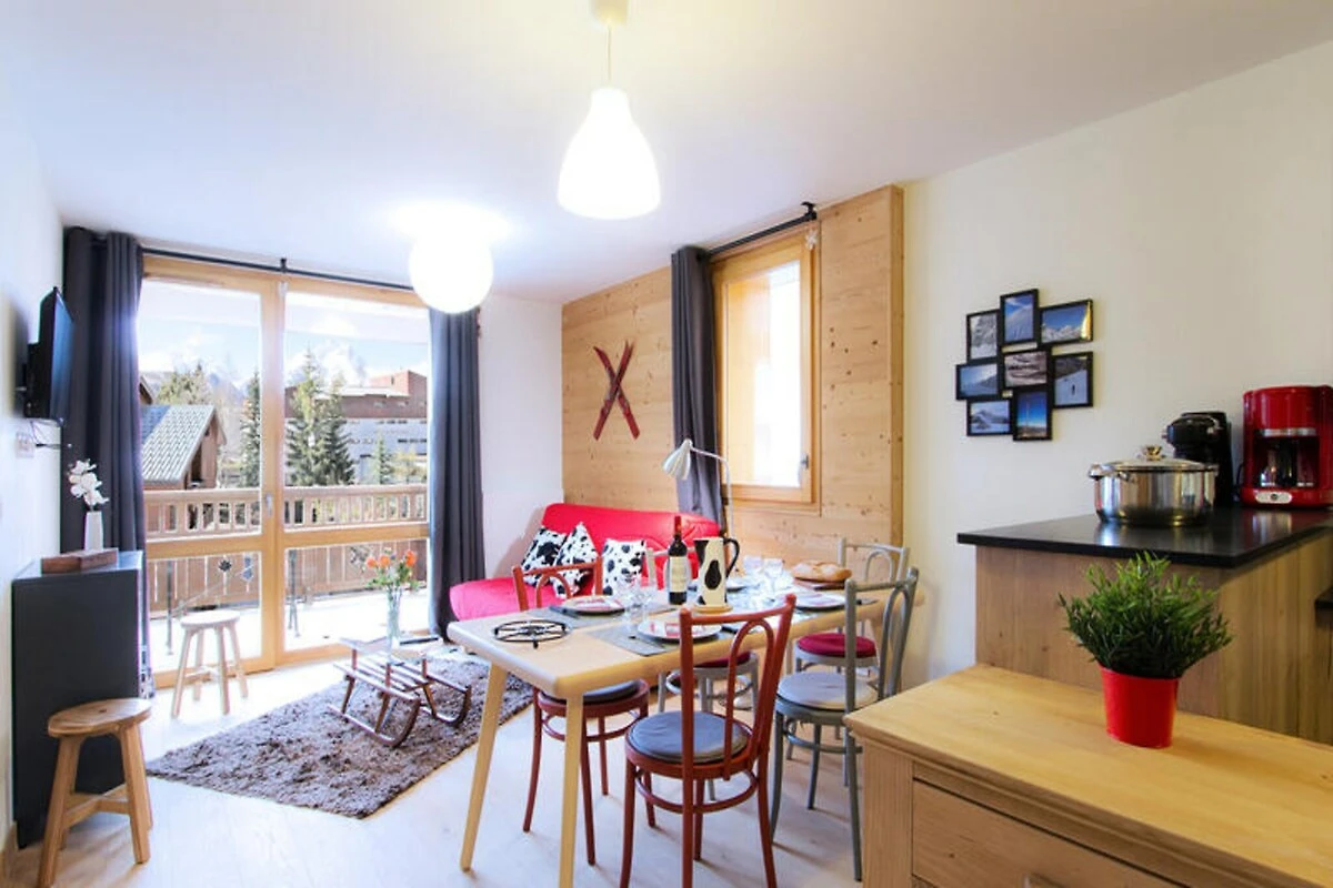 Situato vicino a negozi e servizi essenziali, questo appartamento è la porta d'accesso sia all'avventura che al relax. Che tu stia sciando sulla neve fresca in inverno o esplorando sentieri alpini in estate, il residence Neige et Soleil è la tua casa lontano da casa nel cuore delle montagne.
