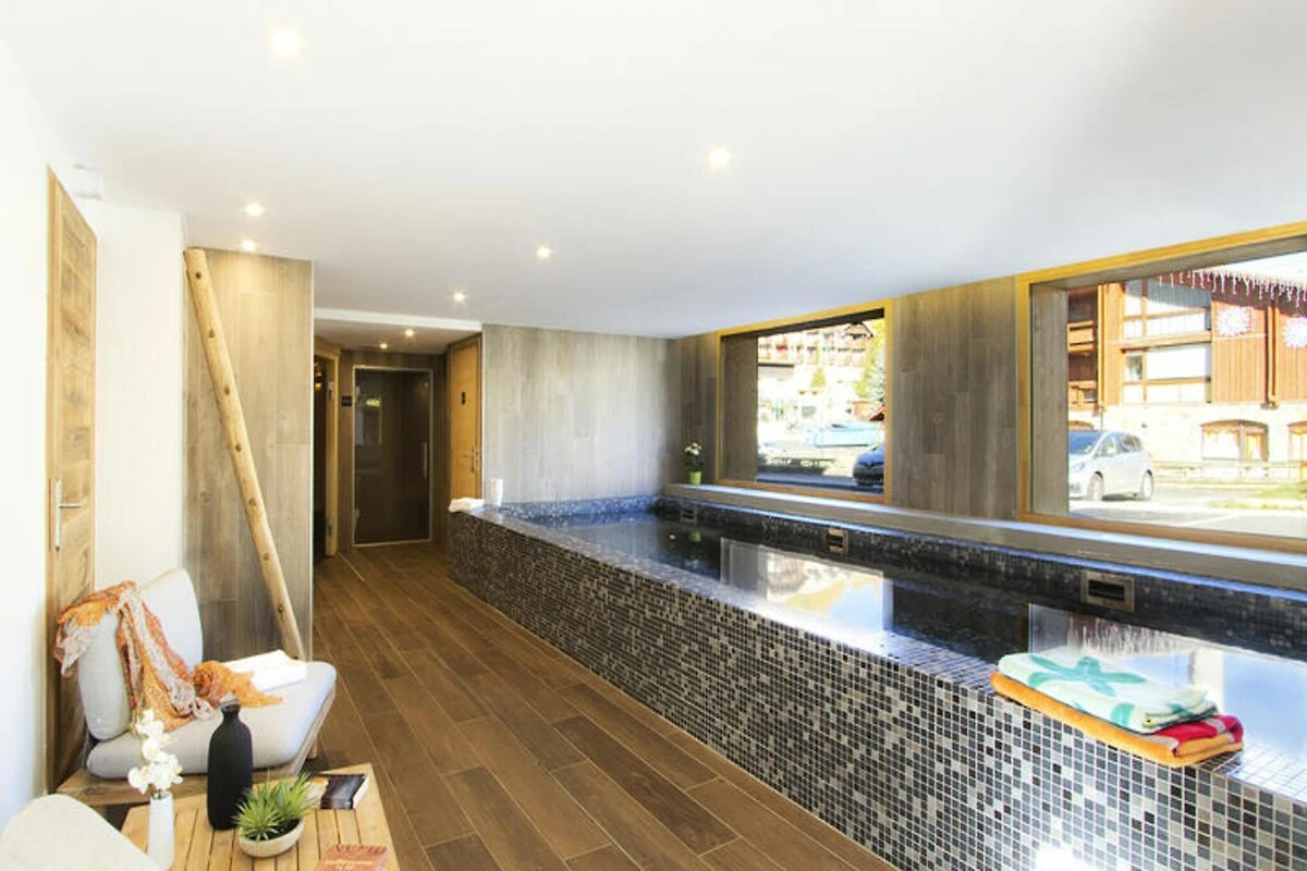 Oltre all'appartamento, il residence offre una lussuosa area benessere con piscina, sauna e hammam, perfetta per rilassarsi dopo una giornata attiva. Un parcheggio sotterraneo privato, un armadietto per gli sci e un asciuga scarponi aggiungono ulteriore comfort, garantendo un'esperienza di vacanza senza intoppi.