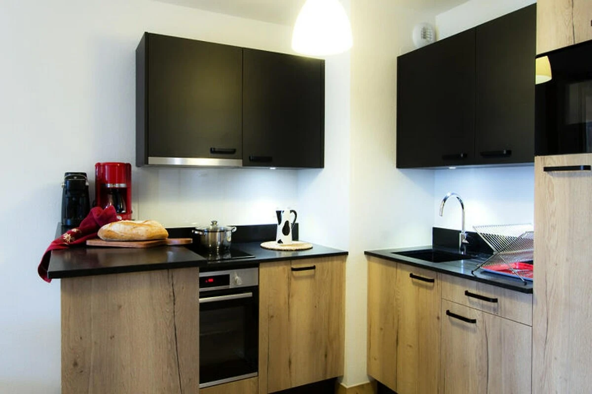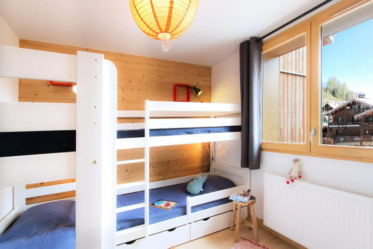 Entrate e scoprite uno spazio progettato con cura, che coniuga comfort moderno e fascino alpino. La zona giorno e pranzo vi invita a rilassarvi dopo una giornata sulle piste, mentre l'angolo cottura completamente attrezzato soddisfa tutte le vostre esigenze culinarie con elettrodomestici come piano cottura in vetroceramica, forno, microonde e persino una griglia per raclette per serate intime. L'appartamento può ospitare comodamente fino a sei persone, disponendo di una camera da letto con letto matrimoniale e di un'altra con letti a castello, ideale per famiglie o piccoli gruppi. Due bagni, di cui uno con doccia, garantiscono comodità e privacy per tutti.