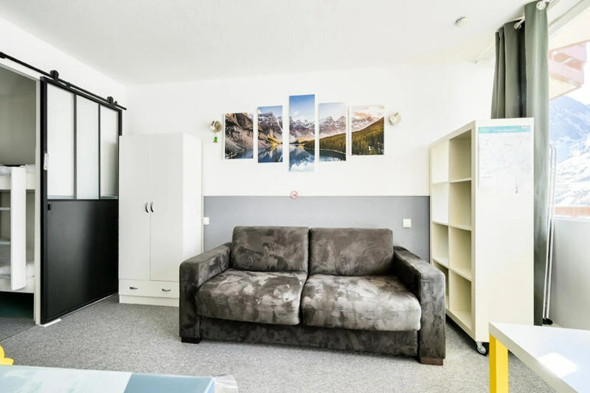 Il monolocale è progettato con cura per massimizzare il comfort e la comodità. Dispone di un accogliente soggiorno con divano letto, una nicchia privata con letto matrimoniale e una cucina a pianta aperta completamente attrezzata, perfetta per preparare i pasti dopo una giornata di avventure. Il bagno include una vasca con doccia e l'ampio spazio di stoccaggio dell'appartamento garantisce un soggiorno senza ingombri. Ulteriori vantaggi includono un parcheggio coperto, l'accesso diretto alle piste e la possibilità di portare con voi i vostri amici a quattro zampe.