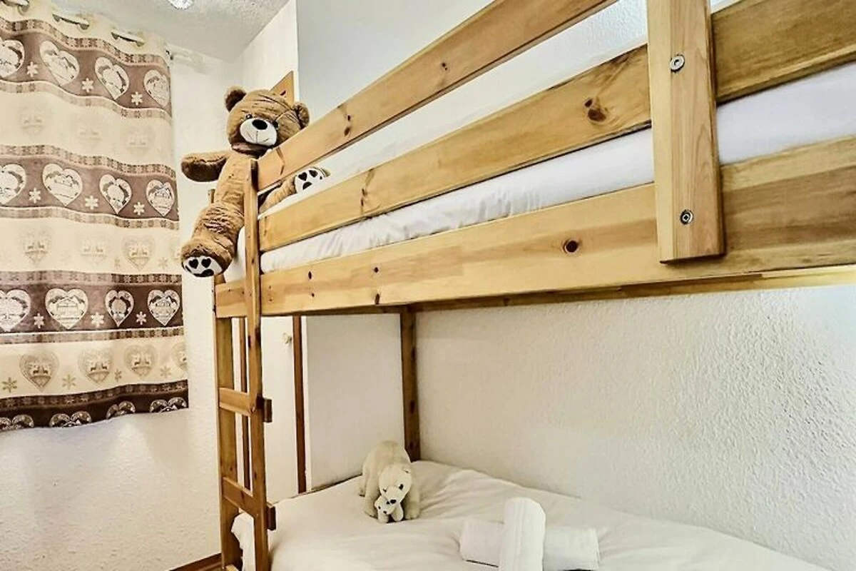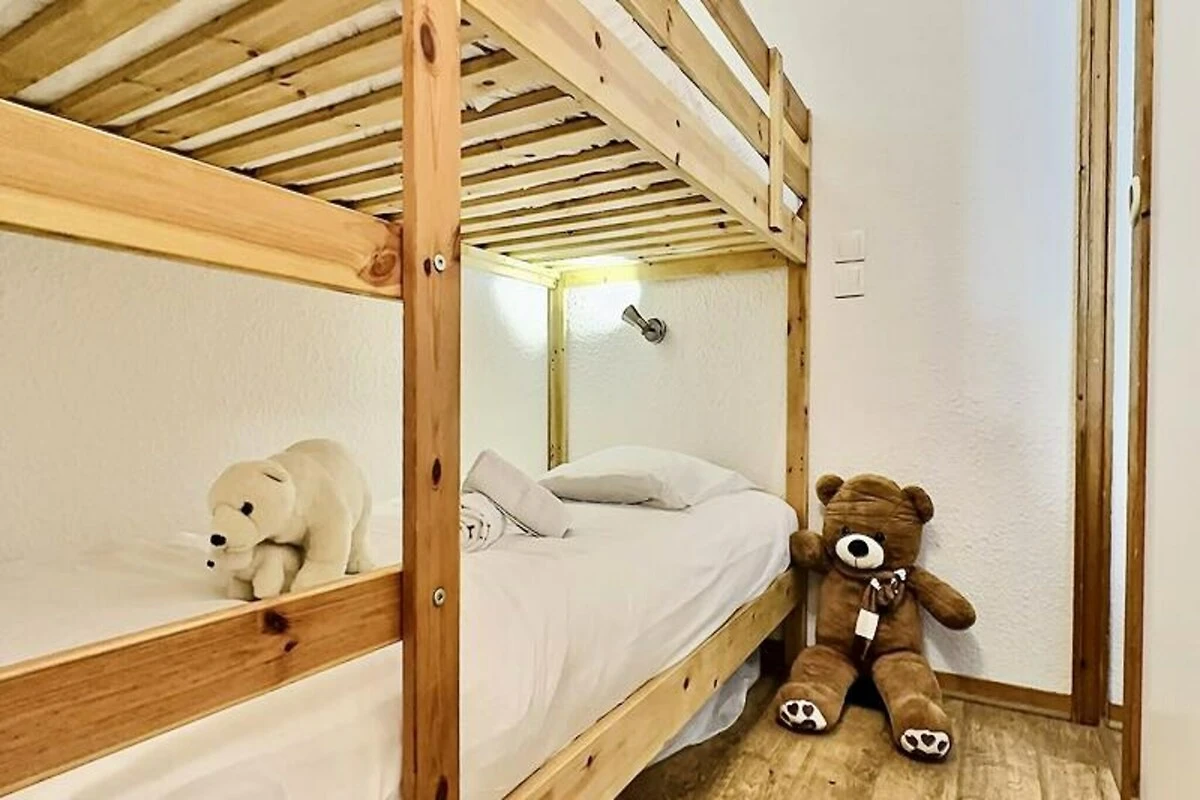 Entrate in questo paradiso di 25 m², progettato con cura per ospitare fino a quattro persone. La zona giorno dispone di un comodo divano letto, mentre una zona notte separata con letti a castello offre uno spazio accogliente per eventuali ospiti aggiuntivi. Si prega di notare che il letto a castello superiore non è adatto a bambini di età inferiore ai sei anni. La cucina ben attrezzata vi invita a preparare pasti abbondanti dopo una giornata di esplorazione, completa di fornelli elettrici, forno combinato/microonde, lavastoviglie e frigorifero. Una doccia moderna e un WC separato aggiungono praticità, mentre il balcone esposto a est offre un angolo di tranquillità dove rilassarsi con vista sulle montagne, sulla foresta e sulle piste.