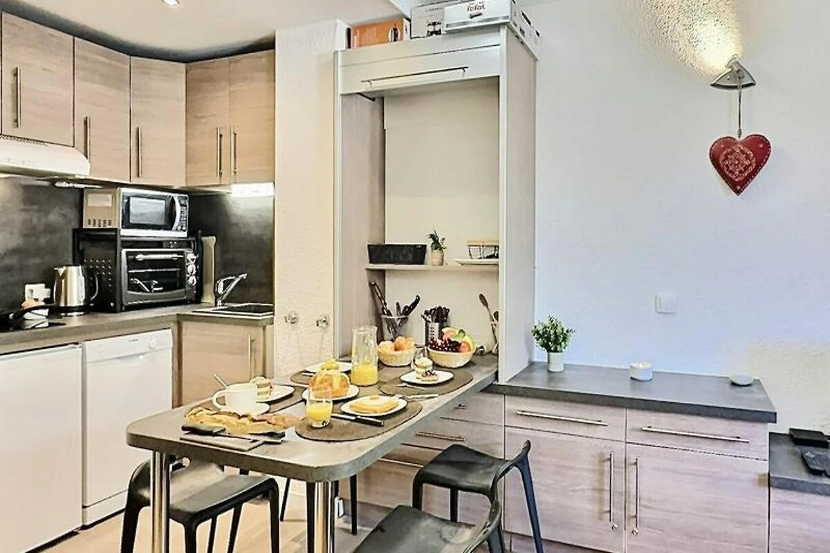 Risvegliatevi con l'aria frizzante delle Alpi e con una vista mozzafiato sulle maestose vette della Val d'Isère da questo accogliente monolocale, situato in una posizione perfetta per fughe sia invernali che estive. Situato nell'incantevole quartiere di La Balme, all'interno del residence alberghiero Odalys, questo rifugio offre un armonioso mix di comfort e praticità, a soli 400 metri dalle piste e a soli 300 metri a piedi dal vivace centro del paese. Che siate qui per sfrecciare sulla neve incontaminata o esplorare i rigogliosi sentieri di montagna, questo monolocale è la vostra porta d'accesso all'avventura.