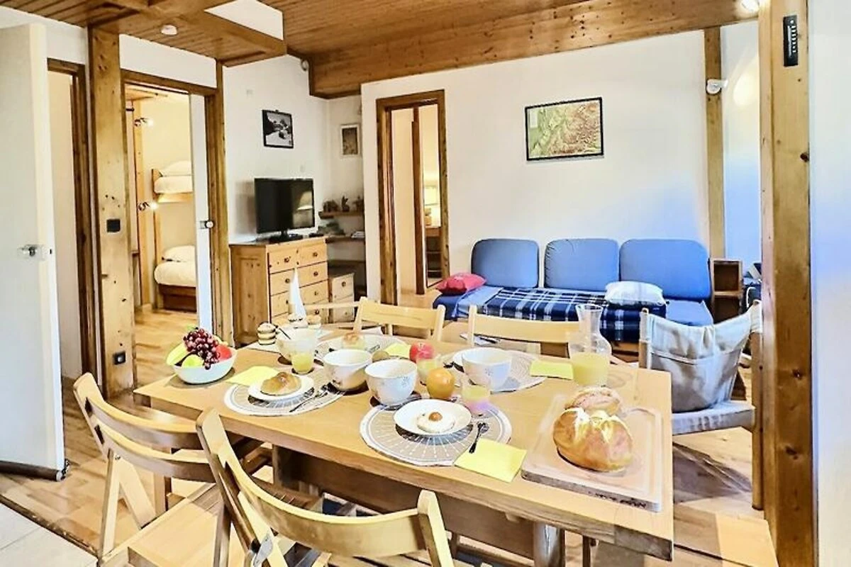 L'appartamento si estende su 53 m² ed è progettato con cura per offrire comfort e praticità. Il soggiorno dispone di due letti singoli, mentre la prima camera da letto offre un comodo letto matrimoniale. La seconda camera da letto include letti a castello, con il letto superiore non adatto a bambini di età inferiore ai sei anni. Una cucina completamente attrezzata con piano cottura elettrico, forno a microonde, frigorifero e lavastoviglie vi permetterà di preparare i pasti con facilità. La proprietà vanta anche un bagno con vasca e WC, oltre a un ulteriore bagno con doccia e WC, offrendo ampi servizi per tutti gli ospiti. Servizi moderni come la TV e il deposito sci contribuiscono al comfort del vostro soggiorno.