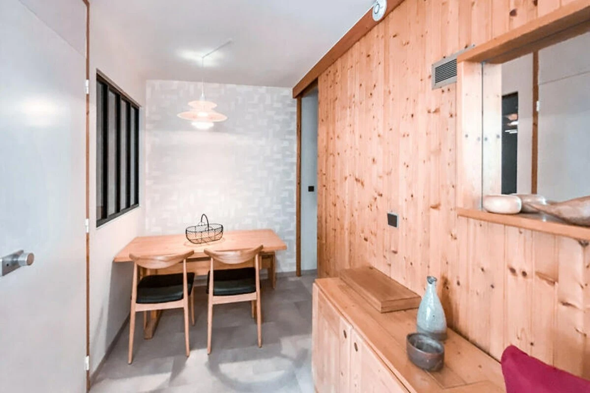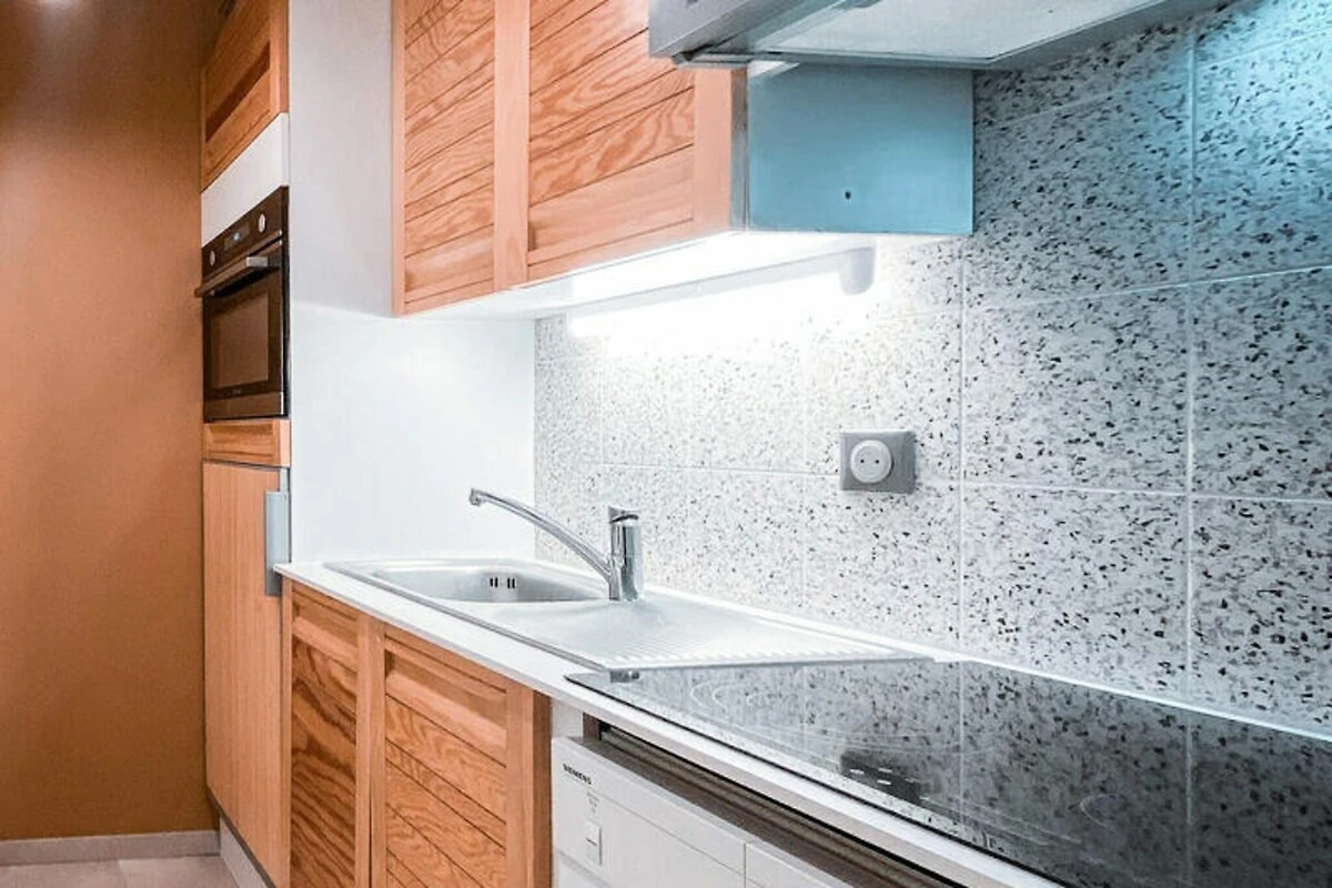 Internamente, l'appartamento di 36 m² è progettato con cura per ospitare fino a quattro persone. Il soggiorno dispone di due letti singoli, mentre la camera da letto offre una versatile soluzione per la notte con due letti singoli che possono essere uniti per formare un letto matrimoniale. La cucina completamente attrezzata include un piano cottura in vetroceramica, forno combinato e microonde, frigorifero e lavastoviglie, rendendo facile preparare i pasti dopo una giornata di avventure. Il balcone esposto a nord-est vi invita a rilassarvi con una vista mozzafiato sulle montagne, mentre servizi come TV, scaldasalviette elettrico, armadietto per gli sci e parcheggio coperto garantiscono un soggiorno confortevole e pratico.