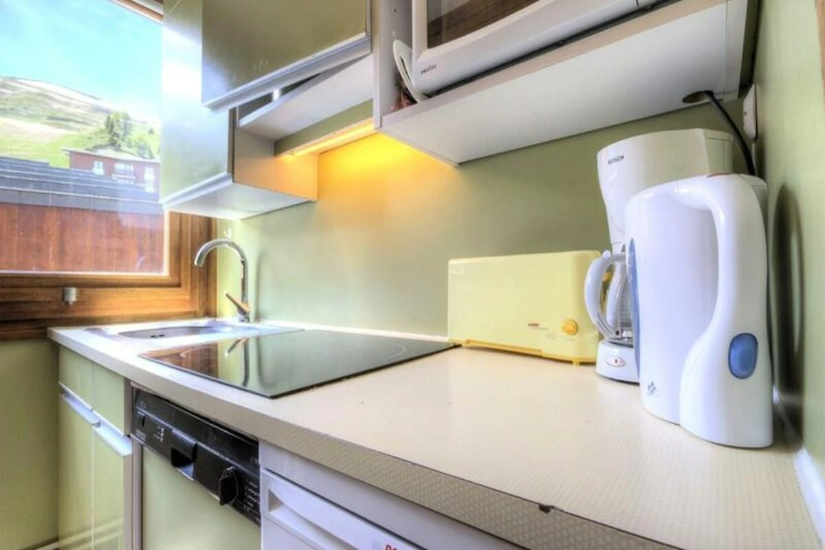 Situato in posizione elevata rispetto alla vivace stazione sciistica di La Plagne, questo grazioso appartamento nel residence Aconcagua offre un rifugio caldo e accogliente per un massimo di sette persone. Grazie al suo balcone esposto a sud-ovest, potrete godere di una vista panoramica sulle piste innevate e sul vivace villaggio sottostante, creando lo sfondo perfetto per la vostra vacanza alpina. Che siate qui per emozionanti avventure sugli sci o per tranquille fughe in montagna, questa proprietà vi mette al centro di tutto. All'interno, l'appartamento vanta una disposizione ben studiata con due accoglienti camere da letto e un'ampia zona giorno. La camera da letto principale dispone di un comodo letto matrimoniale, mentre la seconda camera include letti a castello e un letto singolo, ideale per famiglie o gruppi. Il soggiorno offre ulteriori posti letto con un divano letto e un letto estraibile, garantendo a tutti il proprio spazio. La cucina separata è completamente attrezzata con elettrodomestici moderni, tra cui piano cottura in vetroceramica, frigorifero, mini-forno, microonde e lavastoviglie, rendendo facile preparare pasti abbondanti dopo una giornata sulle piste. Per una maggiore comodità, l'appartamento include una TV a schermo piatto, un bagno con vasca e un WC separato. Armadietti per gli sci e accesso all'ascensore completano il pacchetto, garantendo un soggiorno senza pensieri. Situato all'uscita di Plagne Centre verso Plagne 2000, il residence offre un facile accesso agli impianti di risalita e ai servizi del villaggio. Che stiate esplorando il vasto comprensorio Paradiski o godendovi le attività après-ski, tutto ciò di cui avete bisogno è a pochi istanti di distanza. In estate, la zona si trasforma in un paradiso per escursionisti e amanti della mountain bike, con sentieri che si snodano attraverso paesaggi alpini mozzafiato. Scegliete questo delizioso appartamento per la vostra prossima vacanza e vivete la magia di La Plagne con comfort e stile. Dagli entusiasmanti sport invernali alle tranquille fughe estive, questa proprietà è la vostra porta d'accesso a ricordi indimenticabili in montagna.