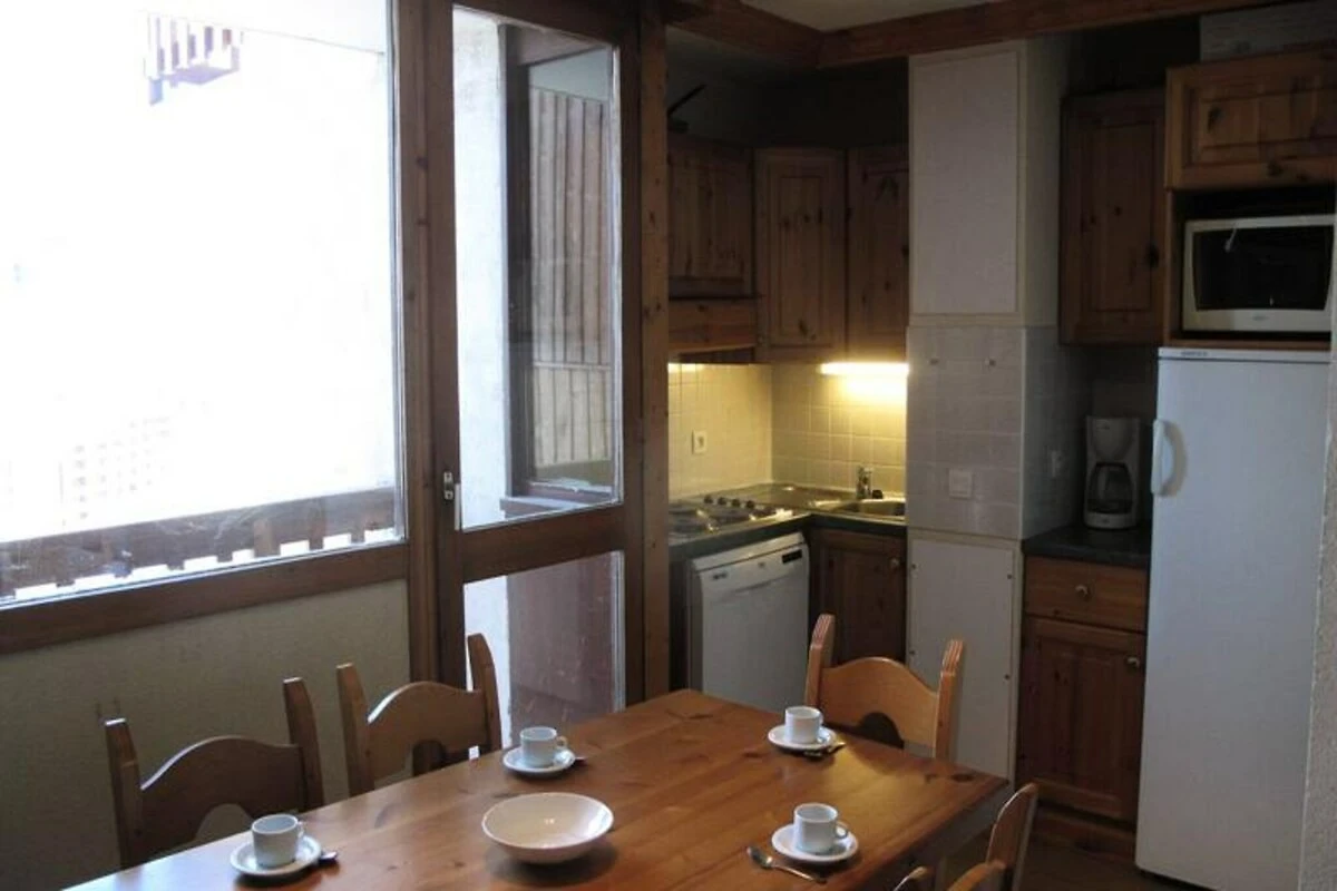 Internamente, l'appartamento di 39 m² può ospitare comodamente fino a sei persone. Il soggiorno dispone di un comodo divano letto e di un letto a rotelle, perfetti per rilassarsi dopo una giornata sulle piste. La cucina a pianta aperta è dotata di tutto il necessario, tra cui un mini-forno, un microonde, un piano cottura in vetroceramica e un frigorifero, rendendo facile preparare pasti abbondanti. La camera da letto offre una sistemazione flessibile con due letti singoli che possono essere uniti in un letto matrimoniale, mentre una zona notte separata con un letto a castello garantisce il comfort di famiglie o gruppi. Un bagno e una toilette separati aggiungono comfort al vostro soggiorno e il residence include due armadietti per gli sci.