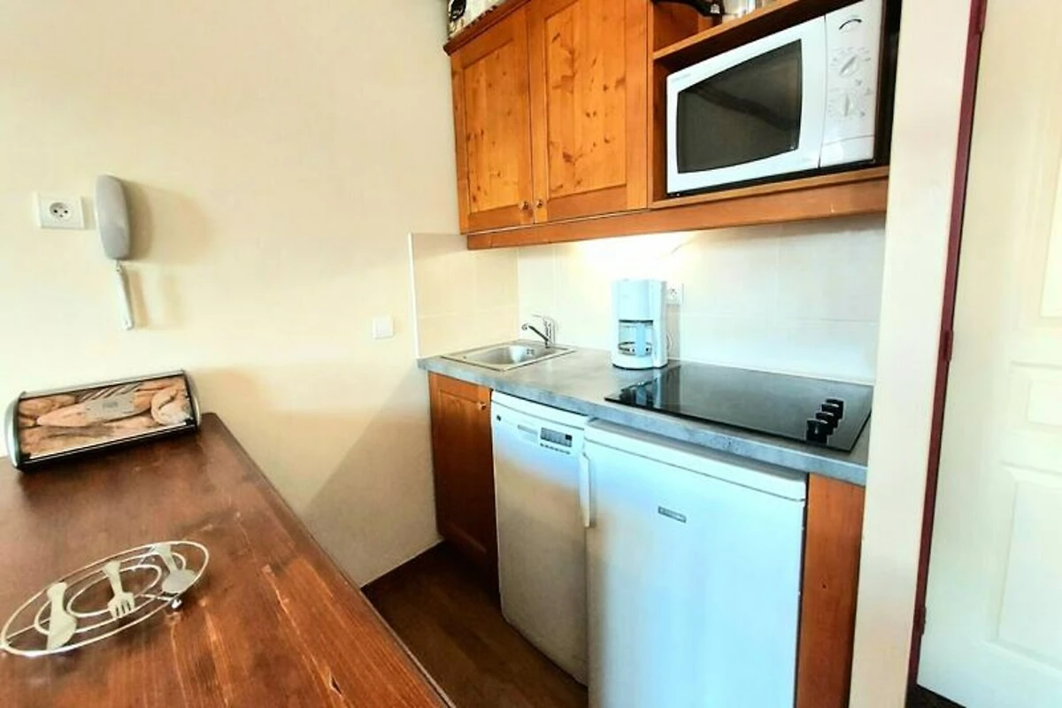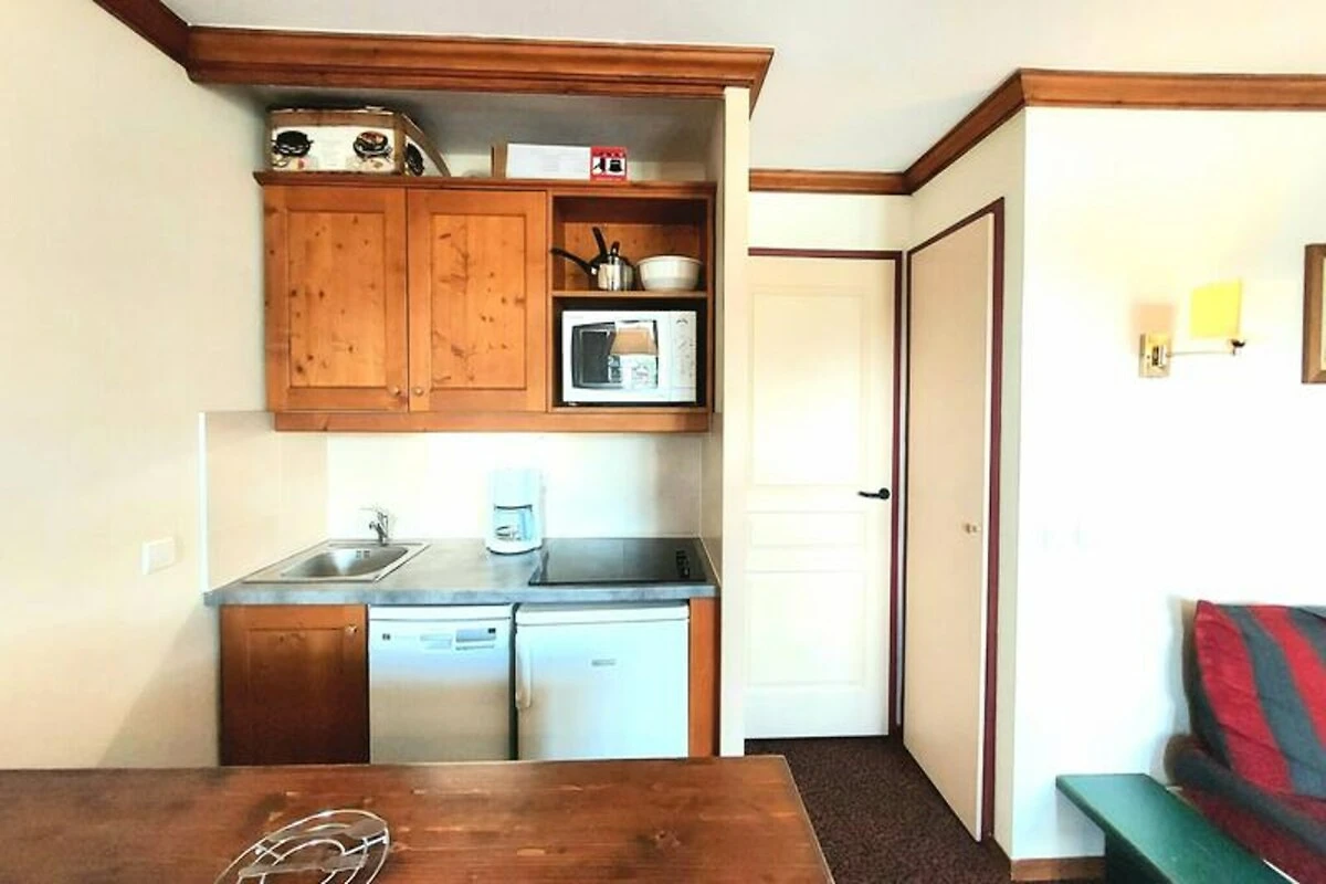 Internamente, l'appartamento di 43 m² può ospitare comodamente fino a sette persone, rendendolo ideale per famiglie o gruppi di amici. Il soggiorno dispone di due letti singoli e un letto estraibile aggiuntivo, mentre le due camere da letto offrono soluzioni di riposo con un letto matrimoniale in una e un letto a castello nell'altra. La cucina è completamente attrezzata con elettrodomestici moderni, tra cui lavastoviglie, forno combinato, piano cottura in vetroceramica e frigorifero, per consentirvi di preparare pasti abbondanti dopo una giornata sulle piste. Due bagni, di cui uno con doccia e WC, aumentano la comodità, mentre un armadietto per gli sci custodisce la vostra attrezzatura in modo sicuro e ordinato.