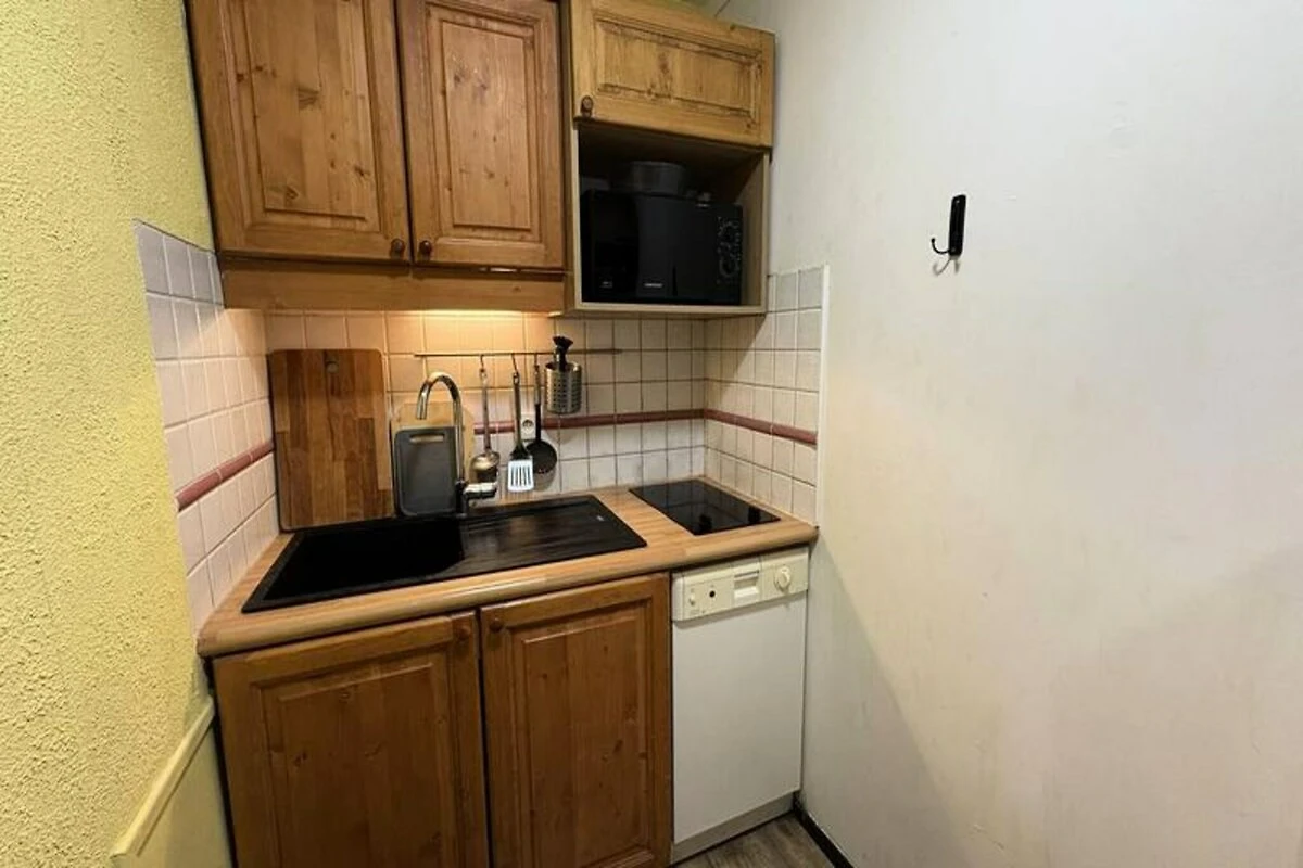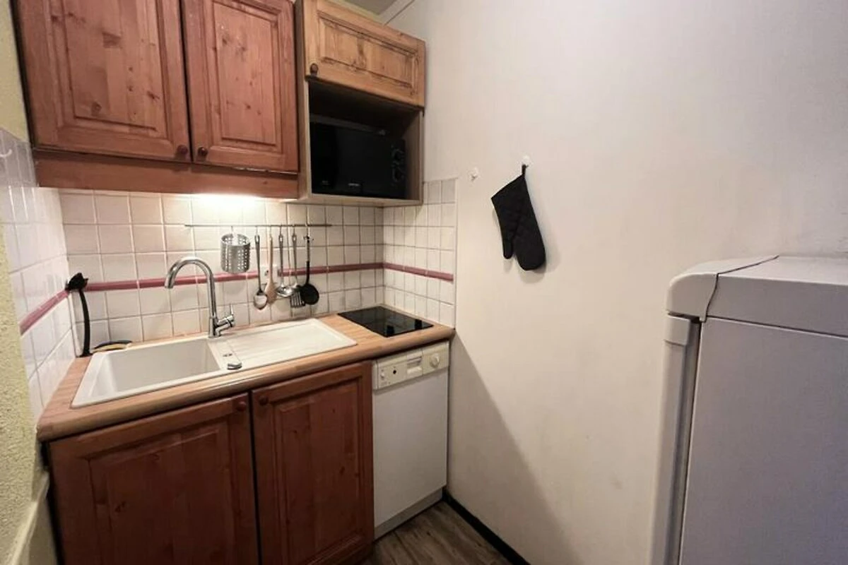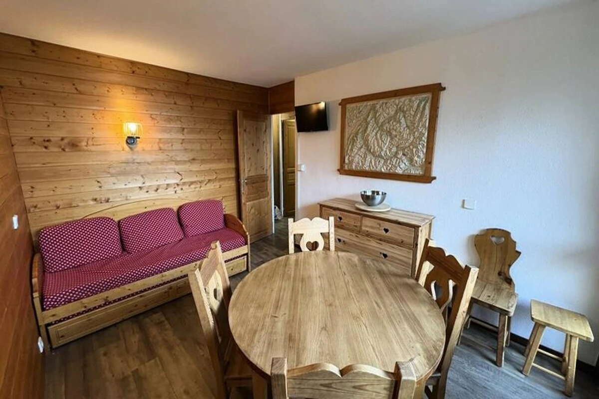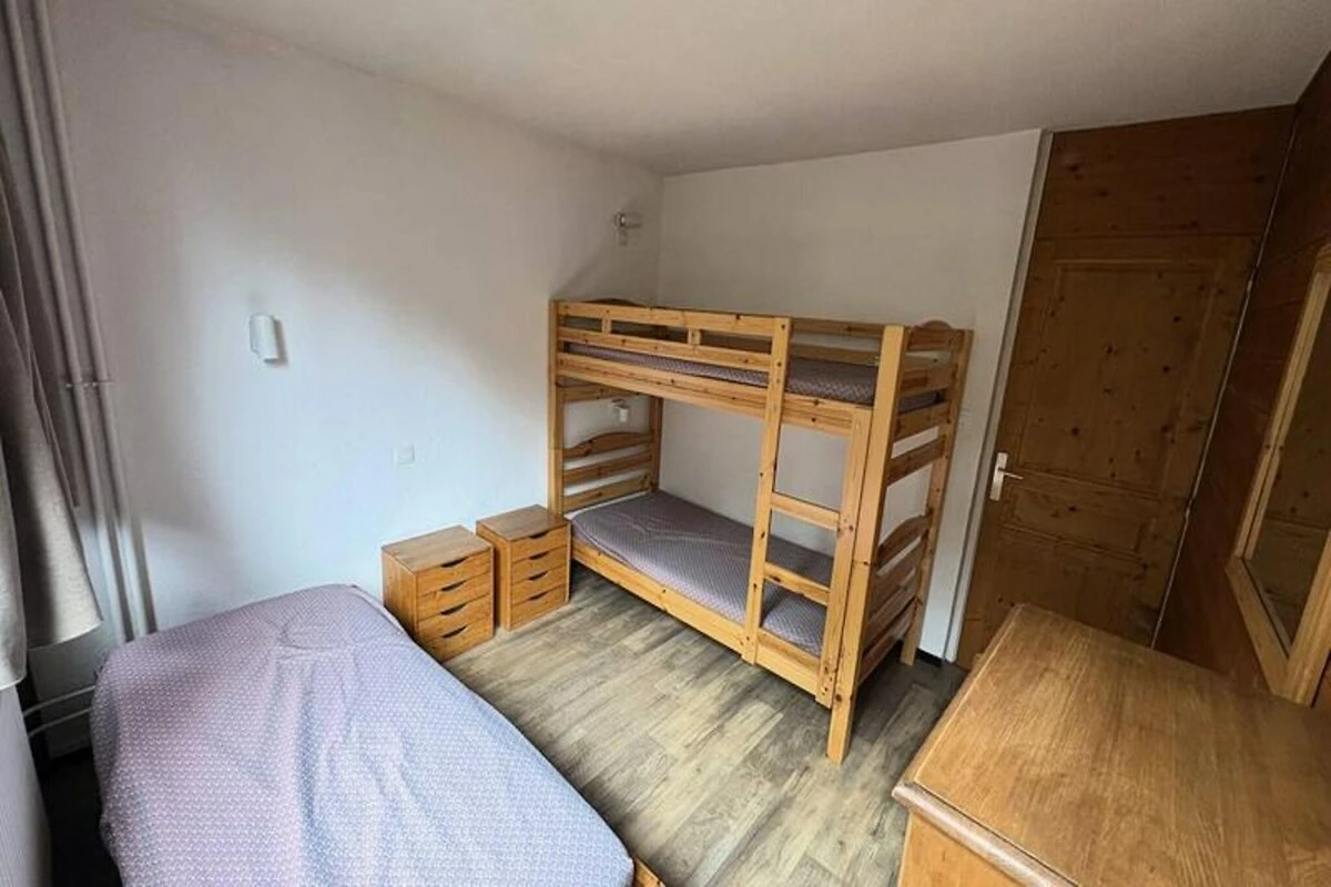 L'appartamento, situato al 4° piano del Residence Le France, si estende su 43 m² e può ospitare comodamente fino a sette persone. La sua disposizione studiata nei minimi dettagli comprende un accogliente soggiorno con due letti estraibili, un televisore e un balcone con splendida vista a nord. La prima camera da letto dispone di due letti singoli che possono essere uniti per formare un letto matrimoniale, mentre la seconda camera offre un letto singolo e un letto a castello, perfetti per famiglie o gruppi. La cucina completamente attrezzata include lavastoviglie, forno a microonde/grill, piano cottura elettrico e frigorifero, rendendo facile preparare i pasti dopo una giornata sulle piste. Un bagno con vasca e WC garantisce comfort e praticità durante tutto il soggiorno.
