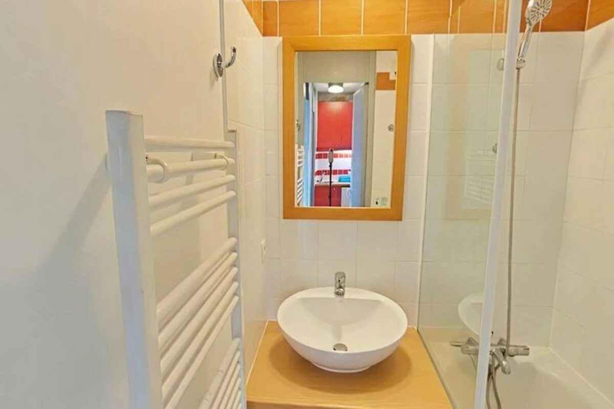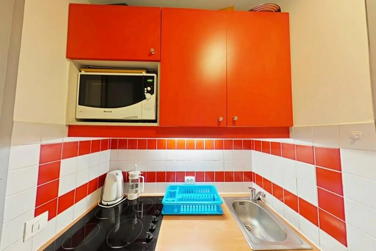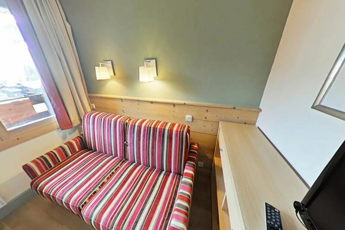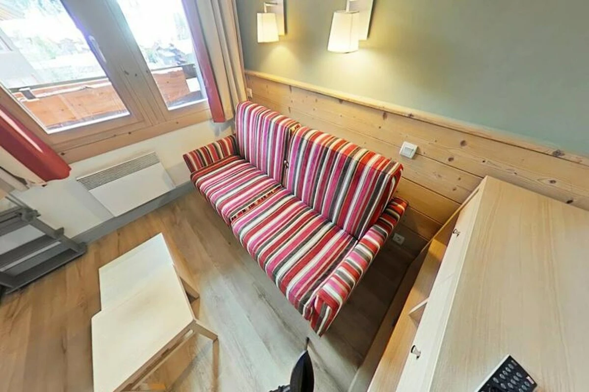 Entra per scoprire un luminoso e accogliente soggiorno sapientemente diviso da una parete scorrevole. La zona soggiorno dispone di un comodo divano letto e di una TV, mentre la zona notte è dotata di un letto a castello, rendendola ideale per un massimo di quattro persone. La cucina completamente attrezzata include tutto il necessario per preparare pasti in casa, dal microonde alla macchina per il caffè, mentre il bagno offre una rilassante vasca da bagno per rilassarsi dopo una giornata sulle piste. I servizi igienici separati e il Wi-Fi incluso aumentano la comodità. Un armadietto per gli sci all'ingresso e un parcheggio coperto nelle vicinanze garantiscono un soggiorno senza problemi.