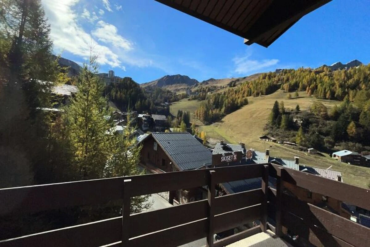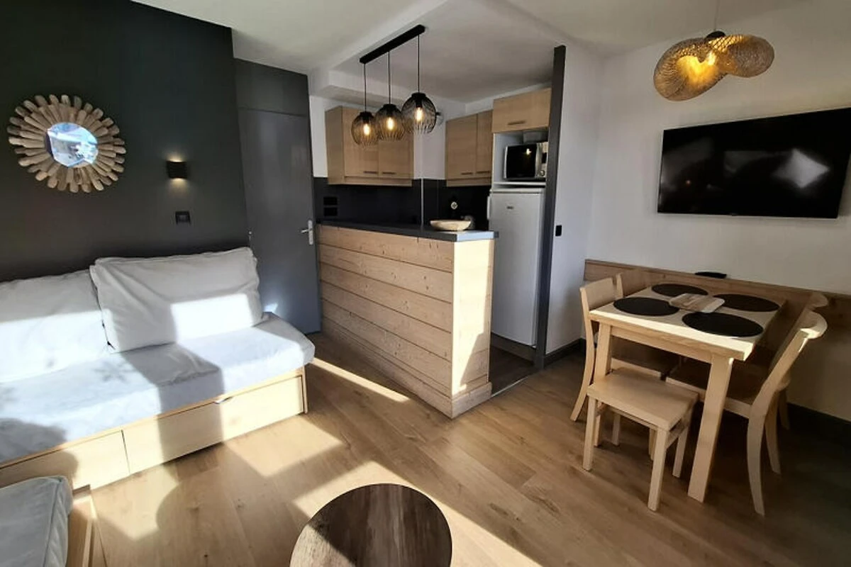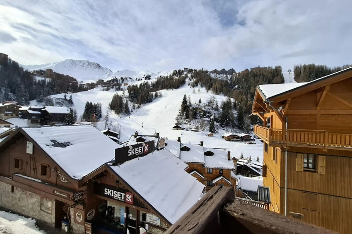 Immagina di svegliarti nella serena bellezza delle Alpi francesi, dove il tuo accogliente rifugio a Plagne 1800 offre il perfetto equilibrio tra comfort e avventura. Questo grazioso appartamento di due locali, situato nel residence Ellebore, è progettato per 4-5 persone e offre un'atmosfera calda e accogliente per la tua vacanza in montagna. Con un ampio balcone esposto a sud, godrai di una vista mozzafiato sulle piste e sul vivace centro di Plagne, creando l'atmosfera per indimenticabili mattine alpine. \n\nInternamente, l'appartamento dispone di una cucina ben attrezzata con piano cottura in vetroceramica a 4 fuochi, forno a microonde, frigorifero e lavastoviglie, rendendo la preparazione dei pasti un gioco da ragazzi. Il soggiorno offre un comodo divano letto, un letto estraibile e un divano letto singolo, completati da una TV a schermo piatto per serate accoglienti. La camera da letto vanta un letto matrimoniale da 140 cm con piumoni per notti di riposo, mentre il bagno include una vasca da bagno e un mobile lavabo. Un WC separato aggiunge praticità e un armadietto per gli sci assicura che la tua attrezzatura sia sempre pronta per le piste. \n\nLa posizione è ideale sia per il relax che per l'esplorazione. L'accesso alle piste è a soli 150 metri, facilmente raggiungibile a piedi o con la navetta gratuita. Nelle vicinanze troverete un panificio, un negozio di prodotti regionali e un negozio di articoli sportivi, mentre un minimarket e un ristorante sono a soli 200 metri da casa. Gli ospiti possono inoltre accedere gratuitamente alla piscina Plagne 1800, perfetta per rilassarsi dopo una giornata di sci o escursioni. \n\nChe siate qui per sciare sulla neve fresca o esplorare i sentieri mozzafiato delle Alpi, questo appartamento offre una base accogliente per creare ricordi indelebili. Grazie alla sua posizione privilegiata e ai servizi pensati per voi, è la scelta ideale per famiglie o piccoli gruppi in cerca di un'autentica fuga in montagna.