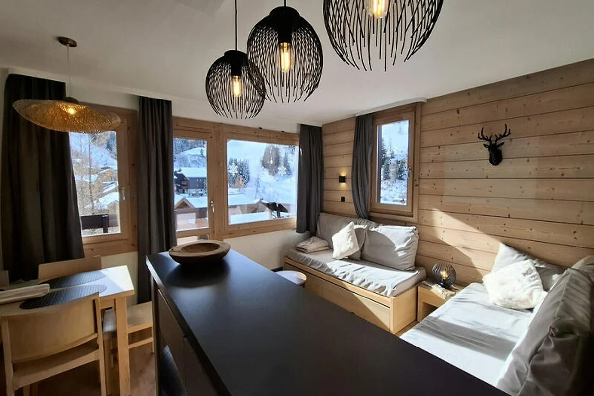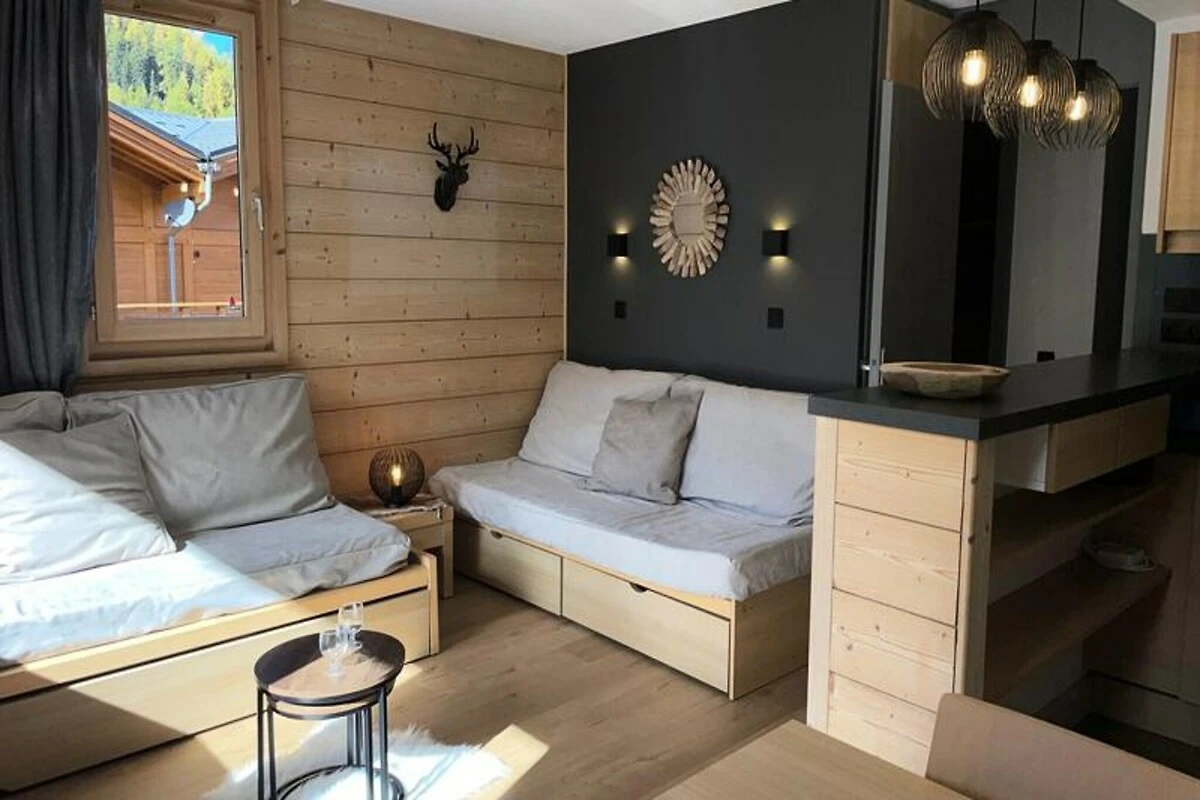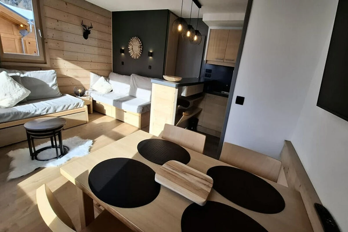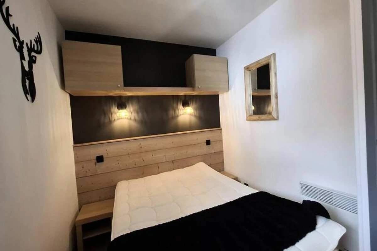 Immagina di svegliarti nella serena bellezza delle Alpi francesi, dove il tuo accogliente rifugio a Plagne 1800 offre il perfetto equilibrio tra comfort e avventura. Questo grazioso appartamento di due locali, situato nel residence Ellebore, è progettato per 4-5 persone e offre un'atmosfera calda e accogliente per la tua vacanza in montagna. Con un ampio balcone esposto a sud, godrai di una vista mozzafiato sulle piste e sul vivace centro di Plagne, creando l'atmosfera per indimenticabili mattine alpine. \n\nInternamente, l'appartamento dispone di una cucina ben attrezzata con piano cottura in vetroceramica a 4 fuochi, forno a microonde, frigorifero e lavastoviglie, rendendo la preparazione dei pasti un gioco da ragazzi. Il soggiorno offre un comodo divano letto, un letto estraibile e un divano letto singolo, completati da una TV a schermo piatto per serate accoglienti. La camera da letto vanta un letto matrimoniale da 140 cm con piumoni per notti di riposo, mentre il bagno include una vasca da bagno e un mobile lavabo. Un WC separato aggiunge praticità e un armadietto per gli sci assicura che la tua attrezzatura sia sempre pronta per le piste. \n\nLa posizione è ideale sia per il relax che per l'esplorazione. L'accesso alle piste è a soli 150 metri, facilmente raggiungibile a piedi o con la navetta gratuita. Nelle vicinanze troverete un panificio, un negozio di prodotti regionali e un negozio di articoli sportivi, mentre un minimarket e un ristorante sono a soli 200 metri da casa. Gli ospiti possono inoltre accedere gratuitamente alla piscina Plagne 1800, perfetta per rilassarsi dopo una giornata di sci o escursioni. \n\nChe siate qui per sciare sulla neve fresca o esplorare i sentieri mozzafiato delle Alpi, questo appartamento offre una base accogliente per creare ricordi indelebili. Grazie alla sua posizione privilegiata e ai servizi pensati per voi, è la scelta ideale per famiglie o piccoli gruppi in cerca di un'autentica fuga in montagna.