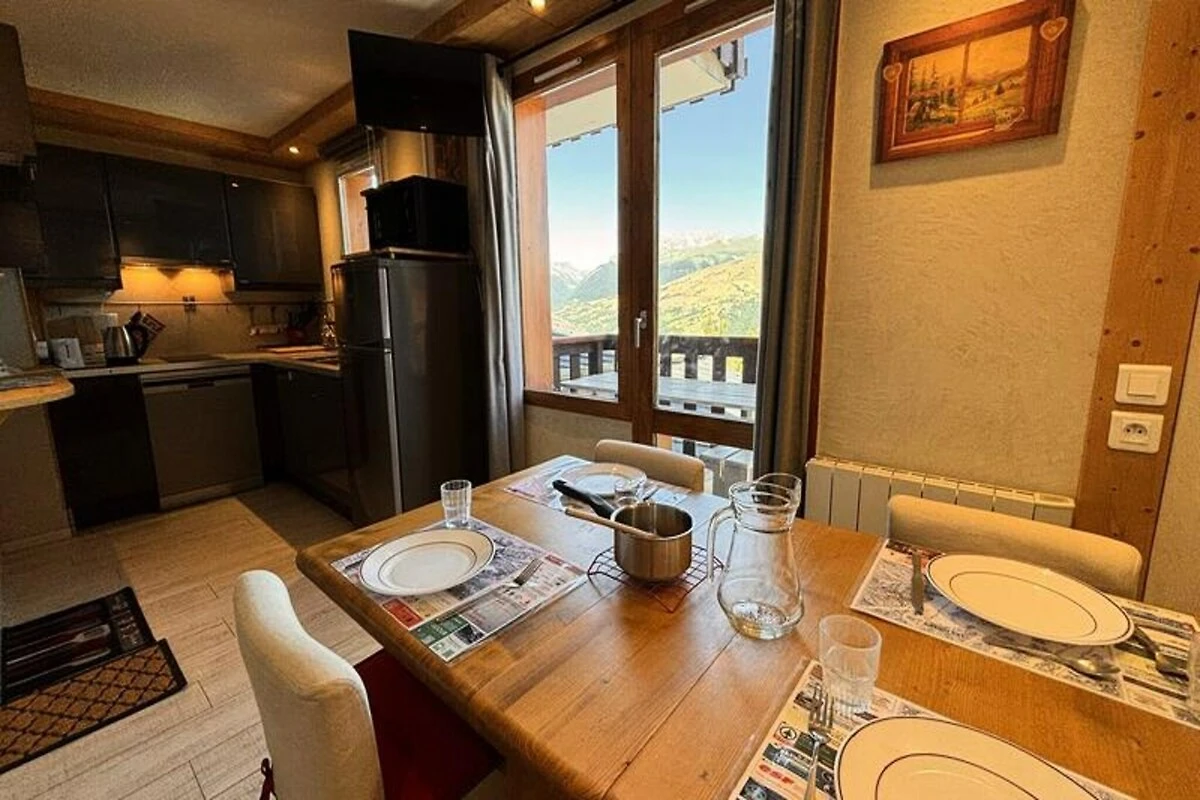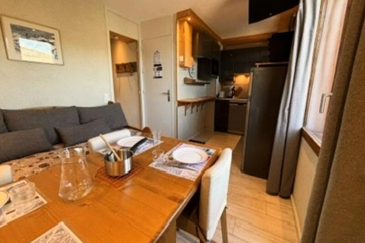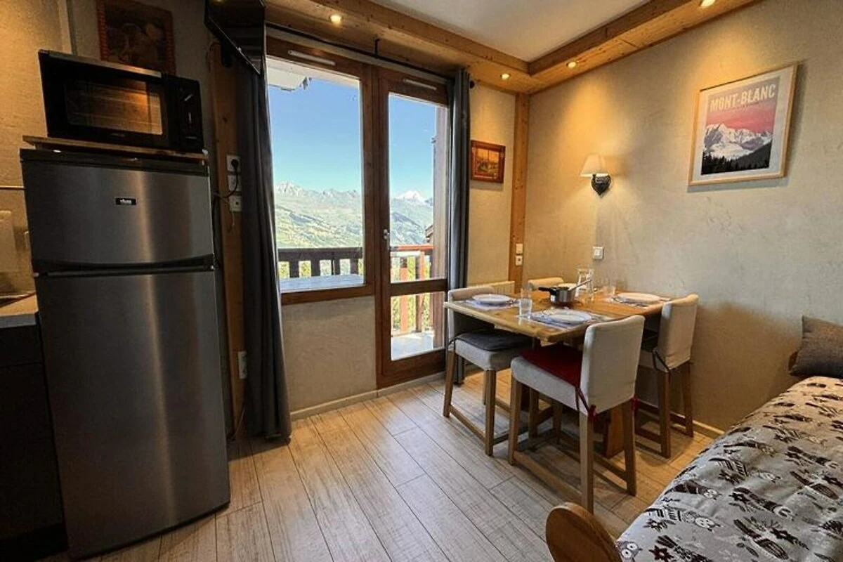 Con una vista mozzafiato sul Monte Bianco e una posizione privilegiata nel cuore di Les Coches, questo grazioso appartamento di 22 m² offre un intimo rifugio alpino per un massimo di quattro persone. Situato al 4° piano di un residence in posizione centrale (accessibile dal 1° piano dall'ingresso secondario), questo accogliente spazio è perfetto per coppie o piccole famiglie in cerca di una comoda e comoda fuga in montagna. L'orientamento a nord-ovest dell'appartamento garantisce tramonti mozzafiato sulle vette, creando un'atmosfera magica dopo una giornata sulle piste. \n\nInternamente, l'appartamento presenta una disposizione studiata con cura, con una camera da letto arredata con un letto matrimoniale e un soggiorno dotato di un letto singolo e un letto estraibile, che lo rendono ideale per una sistemazione flessibile per la notte. L'angolo cottura, integrato nella zona giorno, è completamente attrezzato con elettrodomestici moderni, tra cui forno, lavastoviglie, microonde, piani cottura a induzione e persino un set per raclette e fonduta per un vero assaggio delle Alpi. Un televisore e un arredamento accogliente completano l'atmosfera invitante, mentre il bagno con doccia e WC garantisce tutto il necessario. \n\nIl residence è perfettamente posizionato ai piedi delle piste, con accesso diretto alla vivace Place des Commerces. Qui troverete una varietà di negozi, ristoranti e servizi, oltre alla scuola di sci ESF e all'asilo nido, il che lo rende una scelta eccellente per le famiglie. Il quartiere Carreau è noto per la sua atmosfera vivace e ospita numerose attività ed eventi durante tutta la stagione. Per una maggiore comodità, è disponibile un deposito sci e un parcheggio sotterraneo prenotabile in anticipo. \n\nChe siate qui per sfrecciare sulle piste Paradiski, esplorare l'incantevole villaggio o semplicemente rilassarvi e immergervi nella bellezza alpina, questo appartamento offre la base perfetta per un'indimenticabile vacanza in montagna. Non fumatori e senza animali domestici, garantisce un ambiente pulito e tranquillo a tutti gli ospiti.