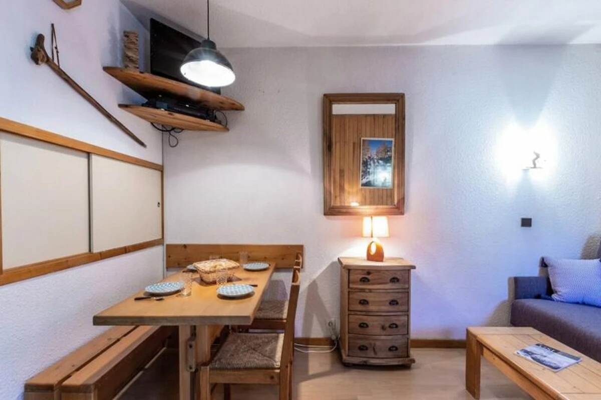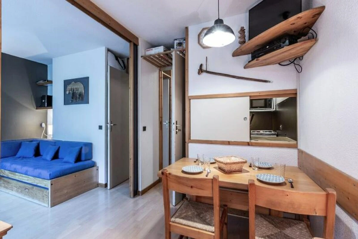 Nel cuore dell'incantevole villaggio di Les Coches, questo accogliente monolocale offre un delizioso rifugio alpino per un massimo di quattro persone. Situato al primo piano del residence La Traverse, l'appartamento combina comfort e praticità, rendendolo la scelta ideale per le vacanze invernali ed estive. Con la sua terrazza esposta a sud con vista sulla vivace Place du Carreau, vi immergerete nella vivace atmosfera di questa pittoresca località di montagna. Il monolocale di 27 m² è sapientemente progettato con una parete divisoria mobile, che crea uno spazio abitativo flessibile. Dispone di una zona notte con due letti singoli, una zona pranzo con divano letto e comfort moderni come TV, lettore DVD e impianto stereo. L'angolo cottura separato è completamente attrezzato con forno a microonde, lavastoviglie, piastre elettriche, frigorifero e persino un set per raclette per autentiche cene alpine. Un bagno, una toilette separata e un armadietto per gli sci contribuiscono alla praticità di questo appartamento ben arredato. Si prega di notare che la struttura è non fumatori, gli animali domestici sono ammessi con un piccolo supplemento e il Wi-Fi non è disponibile.\n\nSituato nel centro di Les Coches, il residence La Traverse si trova a pochi passi da ristoranti, bar, negozi e dalla scuola di sci ESF. La posizione ski-in/ski-out garantisce un facile accesso alle piste, mentre il vicino parcheggio coperto aggiunge comodità. In estate, la zona si trasforma in un paradiso per escursioni a piedi, in bicicletta ed esplorando i paesaggi mozzafiato delle Alpi francesi.\n\nChe siate attratti dall'emozione dello sci nel comprensorio Paradiski o dalla tranquillità delle estati alpine, questo monolocale offre una base perfetta per creare ricordi indimenticabili in montagna.