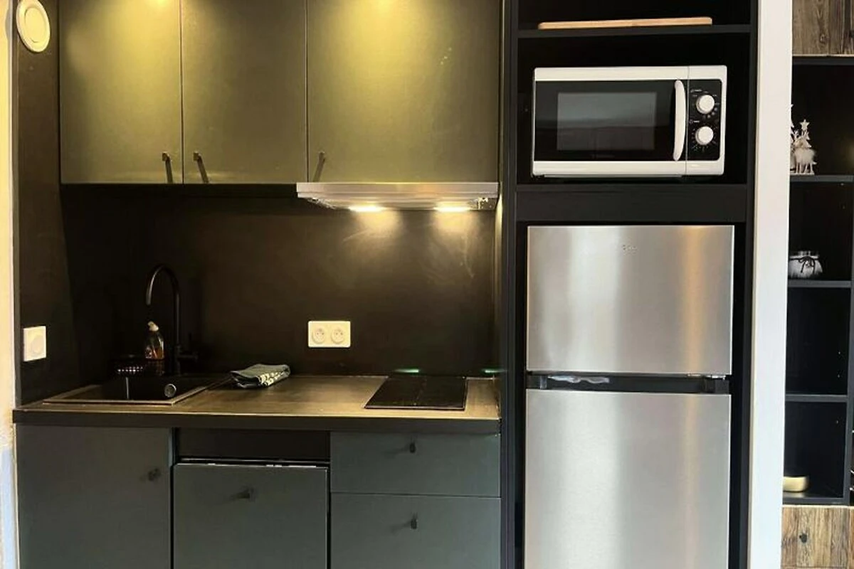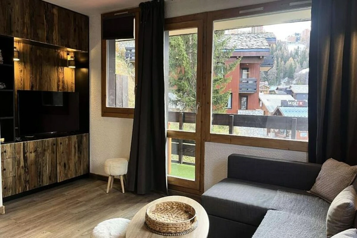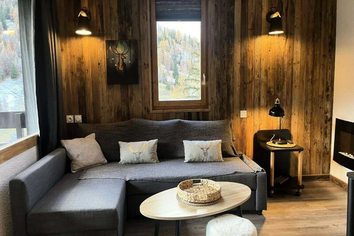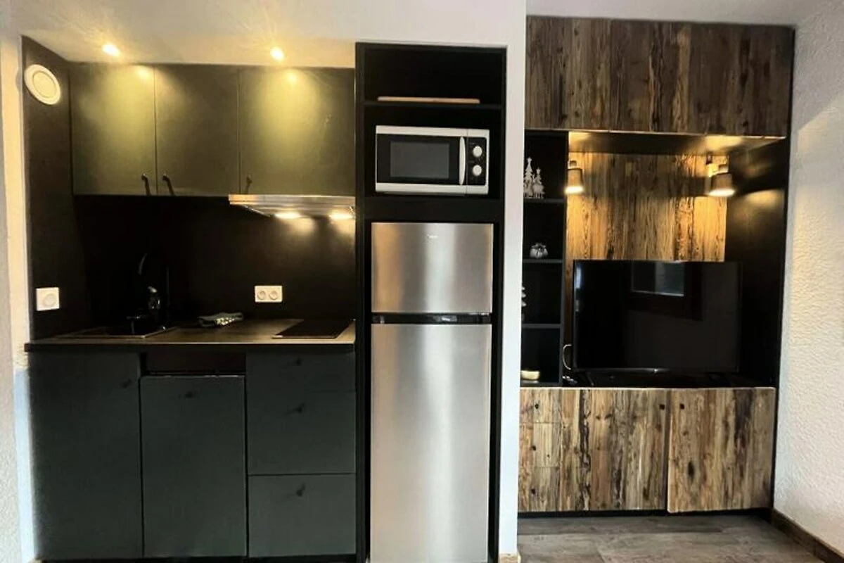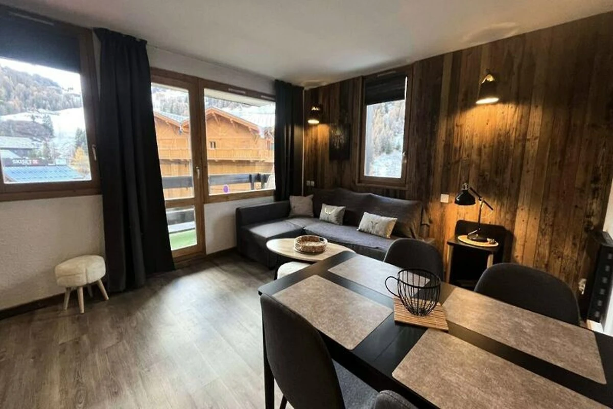 L'appartamento è stato ristrutturato con cura, fondendo il design contemporaneo con l'accogliente fascino alpino. Può ospitare comodamente fino a sei persone, ed è dotato di un soggiorno con divano letto e TV, e di una camera con letti a castello matrimoniali che offrono un rifugio accogliente. La cucina a vista è completamente attrezzata con elettrodomestici moderni, tra cui frigorifero, piano cottura in vetroceramica, forno a microonde e persino una griglia per raclette per assaporare il vero sapore delle Alpi. Ulteriori servizi, come un deposito sci e un parcheggio coperto, garantiscono un soggiorno senza pensieri.