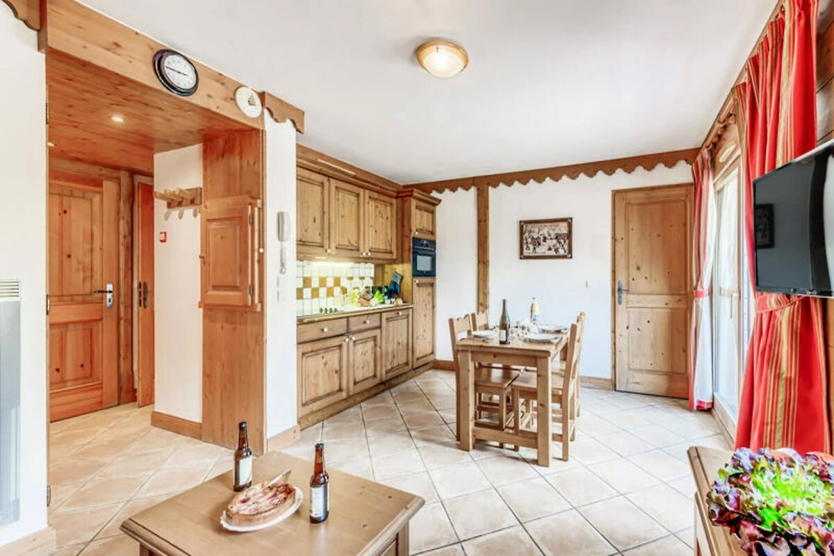 Ogni appartamento è progettato con cura pensando al comfort e alla praticità. L'unità al piano giardino può ospitare fino a quattro persone e dispone di un'accogliente camera da letto, un bagno moderno e una cucina a pianta aperta e una zona giorno con divano letto estraibile. Uscite sul balcone esposto a est per gustare il caffè del mattino ammirando il paesaggio alpino. Gli ospiti beneficiano di servizi premium, tra cui Wi-Fi, garage privato e biancheria da letto e da bagno gratuita. Il residence vanta anche una piscina riscaldata, una spa con hammam e sauna e un centro fitness, per garantirvi il relax dopo una giornata di avventure.