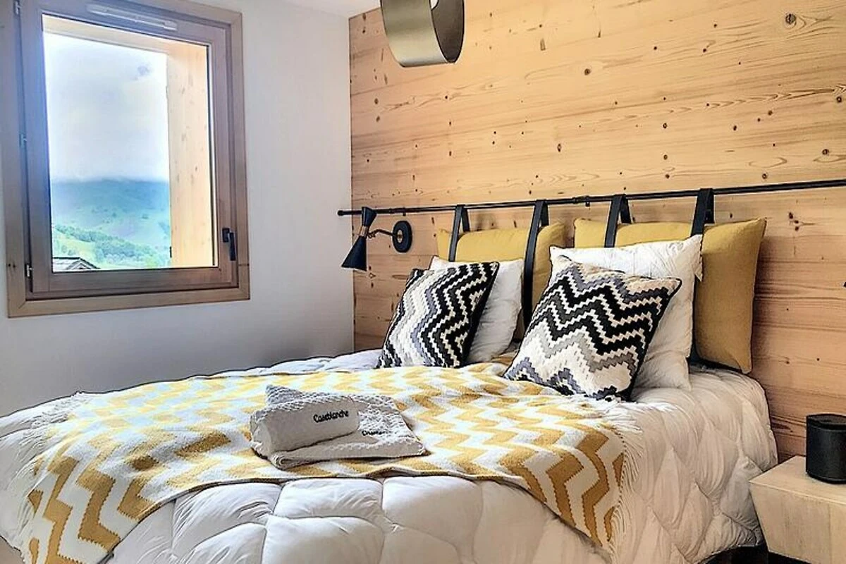 Immagina di svegliarti nella serena bellezza delle Alpi francesi, dove l'aria frizzante di montagna e le viste mozzafiato sulle cime innevate creano l'atmosfera per una vacanza indimenticabile. Lo Chalet IBIS VIPERAE, immerso nel prestigioso borgo di Caseblanche, offre un rifugio di lusso con accesso diretto alle piste e a soli 50 metri dalla cabinovia di Saint Martin, la porta d'accesso al comprensorio sciistico delle 3 Valli, famoso in tutto il mondo. Questa posizione esclusiva combina il fascino di un tradizionale villaggio alpino con la comodità di servizi moderni a portata di mano, tra cui un negozio di articoli sportivi e una deliziosa brasserie di montagna. Progettato per ospitare fino a 12 persone, questo spazioso chalet fonde perfettamente l'eleganza contemporanea con lo stile rustico di montagna. La cucina e la zona pranzo a pianta aperta si aprono su un soleggiato balcone di 17 m², completo di vasca idromassaggio privata per momenti di puro relax. Lo chalet dispone di cinque camere da letto splendidamente arredate, di cui due con bagno privato, un'accogliente zona giorno soppalcata con TV e giochi e un deposito sci con scalda scarponi che si apre direttamente sulle piste. Ulteriori comfort includono una sauna, una cucina completamente attrezzata con elettrodomestici di alta qualità e servizi di qualità come il Wi-Fi, una lavanderia e un parcheggio coperto. Oltre lo chalet, l'incantevole villaggio di Saint Martin de Belleville vi invita a esplorare le sue incantevoli strade, i negozi locali e l'autentica cucina savoiarda. Che vi dedichiate a sciare su piste incontaminate in inverno o a percorrere sentieri panoramici in estate, questa destinazione offre avventure e tranquillità tutto l'anno. Con la sua posizione eccezionale, i servizi di lusso e la calda atmosfera alpina, lo Chalet IBIS VIPERAE promette un'esperienza di vacanza che vi rimarrà nel cuore a lungo.