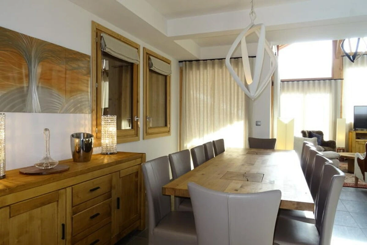 Nel tranquillo borgo di Caseblanche, dove l'eleganza alpina incontra il comfort moderno, lo Chalet MYRIEL offre uno straordinario rifugio ai piedi del rinomato comprensorio sciistico delle 3 Valli. Immaginate di svegliarvi con una vista mozzafiato sulle cime innevate, di uscire sulla terrazza del vostro giardino per immergervi nella vasca idromassaggio e di sentire l'aria frizzante di montagna rigenerare i vostri sensi. Con accesso diretto alle piste e a soli 50 metri dalla cabinovia di Saint Martin, questo chalet è un paradiso per gli amanti dello sci e della natura. Che siate alla ricerca di avventure emozionanti o di un tranquillo relax, questo ambiente promette momenti indimenticabili nel cuore delle Alpi francesi. Con una superficie di 140 metri quadrati, lo Chalet MYRIEL può ospitare fino a 12 persone in sei camere da letto progettate con cura, quattro delle quali dotate di bagno privato per maggiore privacy e comodità. L'ampia zona giorno e pranzo, impreziosita da un accogliente camino, vi invita a rilassarvi dopo una giornata sulle piste. La cucina a pianta aperta è dotata di elettrodomestici moderni, per una preparazione dei pasti senza sforzo. Concedetevi il benessere nella vostra sauna privata e godetevi il lusso di un armadietto per gli sci completo di asciuga scarponi e guanti. Ogni dettaglio è stato curato per rendere il vostro soggiorno ancora più piacevole, dall'atmosfera accogliente ai servizi pratici come il Wi-Fi e il parcheggio coperto. Oltre allo chalet, il borgo offre un negozio di articoli sportivi e un'affascinante brasserie di montagna, perfetta per gli incontri après-ski. La vicina cabinovia di Saint Martin offre un accesso diretto al vasto comprensorio sciistico delle 3 Vallées, rinomato per le sue piste di livello mondiale e i paesaggi mozzafiato. In estate, la regione si trasforma in un paradiso per escursionisti e ciclisti, con sentieri che si snodano tra prati verdeggianti e foreste alpine. Che siate alla ricerca di emozioni invernali o di tranquillità estiva, lo Chalet MYRIEL è la vostra porta d'accesso alle meraviglie delle Alpi francesi. Lasciate che la magia di Caseblanche vi avvolga nel comfort, nell'avventura e nella bellezza senza tempo.