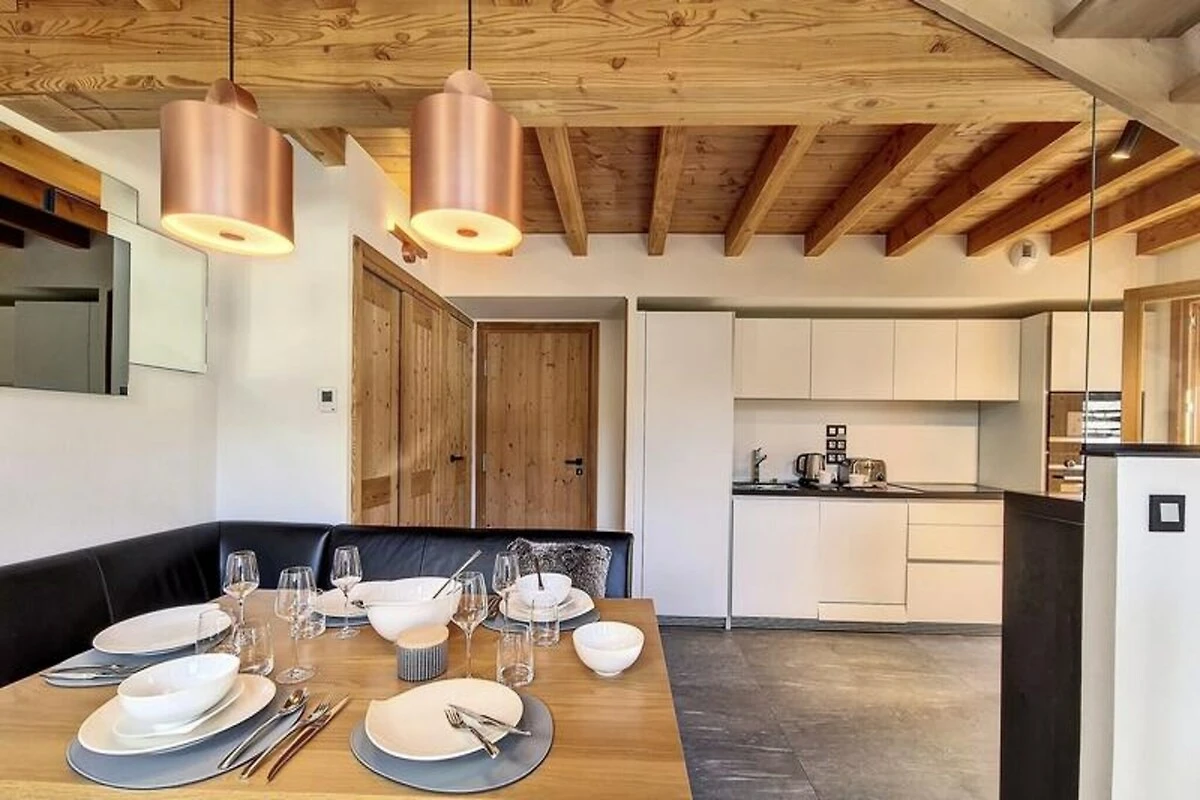 Nel pittoresco borgo di Caseblanche, dove il fascino della tradizionale vita alpina incontra il lusso moderno, lo Chalet Susan offre un rifugio indimenticabile ai piedi delle piste. A soli 50 metri dalla cabinovia di Saint Martin, questo chalet di recente costruzione offre un accesso diretto al comprensorio sciistico delle 3 Valli, rinomato in tutto il mondo, rendendolo un paradiso per gli amanti degli sport invernali e della natura. La tranquilla cornice montana, unita ai servizi di lusso, crea un'atmosfera di puro relax e avventura. Questo elegante chalet si estende su 80 metri quadrati ed è perfettamente progettato per una famiglia numerosa o un gruppo fino a sette persone. Con tre camere da letto con bagno privato distribuite su tre livelli, ogni ospite può godere di privacy e comfort. Il piano terra ospita un accogliente soggiorno con stufa a legna e TV con canali inglesi, che si apre su un balcone esposto a sud-ovest con mobili da giardino, un luogo perfetto per godersi il panorama alpino. La cucina a pianta aperta e la zona pranzo sono completamente attrezzate con elettrodomestici moderni, tra cui piano cottura a induzione, lavastoviglie e macchina da caffè Nespresso, per un'esperienza culinaria impeccabile. \n\nLa disposizione ben studiata dello chalet comprende una camera da letto principale con letto matrimoniale al primo piano, mentre il piano inferiore offre altre due camere da letto con bagno privato, una con letti a castello e un letto singolo, e l'altra con un letto matrimoniale. Ulteriori comfort come il Wi-Fi, un parcheggio sotterraneo privato e un deposito sci situato direttamente sulle piste renderanno il vostro soggiorno semplice e piacevole. \n\nOltre lo chalet, la frazione di Caseblanche vanta un negozio di articoli sportivi e una brasserie di montagna, perfetta per il relax après-ski. Che vogliate sciare sulla neve fresca, esplorare i sentieri panoramici o semplicemente rilassarvi accanto al fuoco, lo Chalet Susan promette una fuga alpina indimenticabile nel cuore di Saint Martin de Belleville.