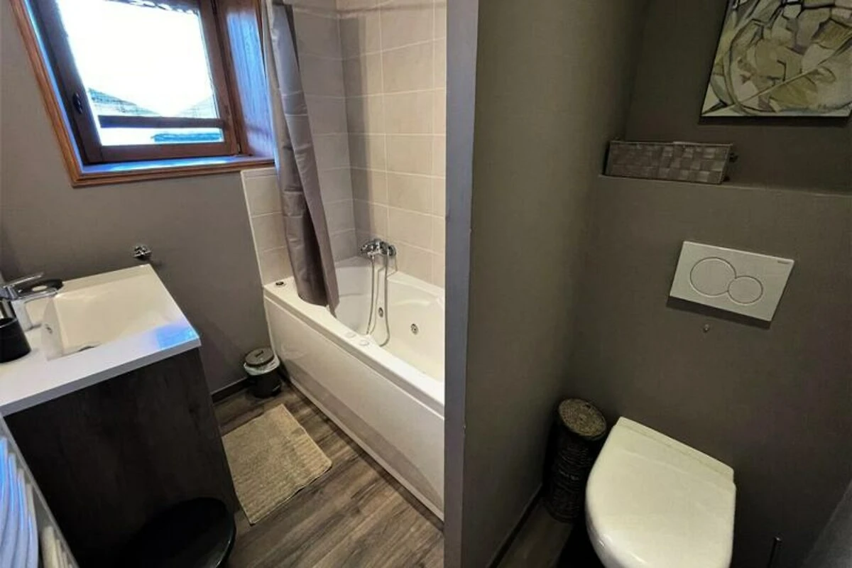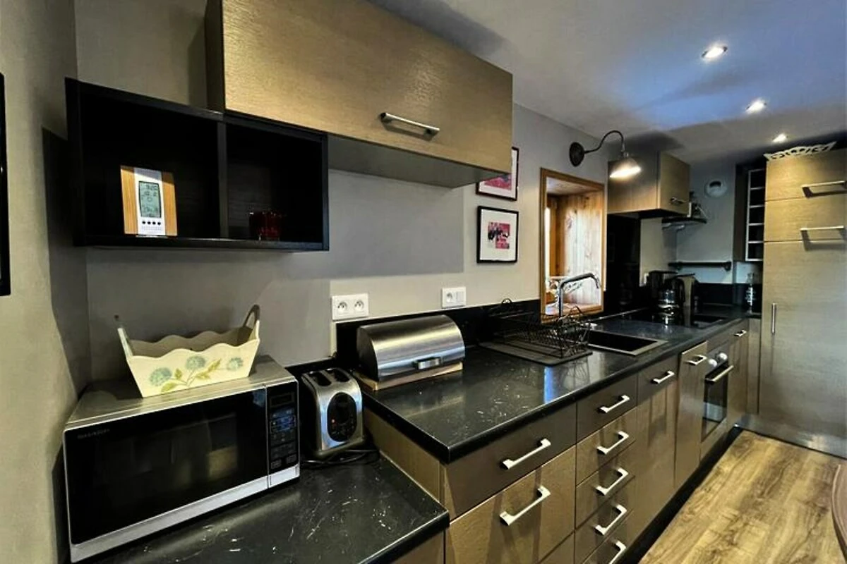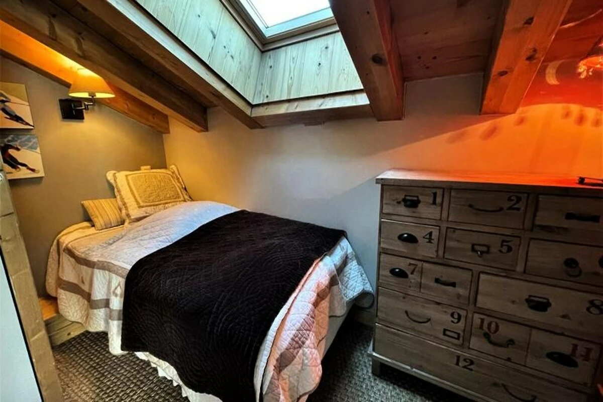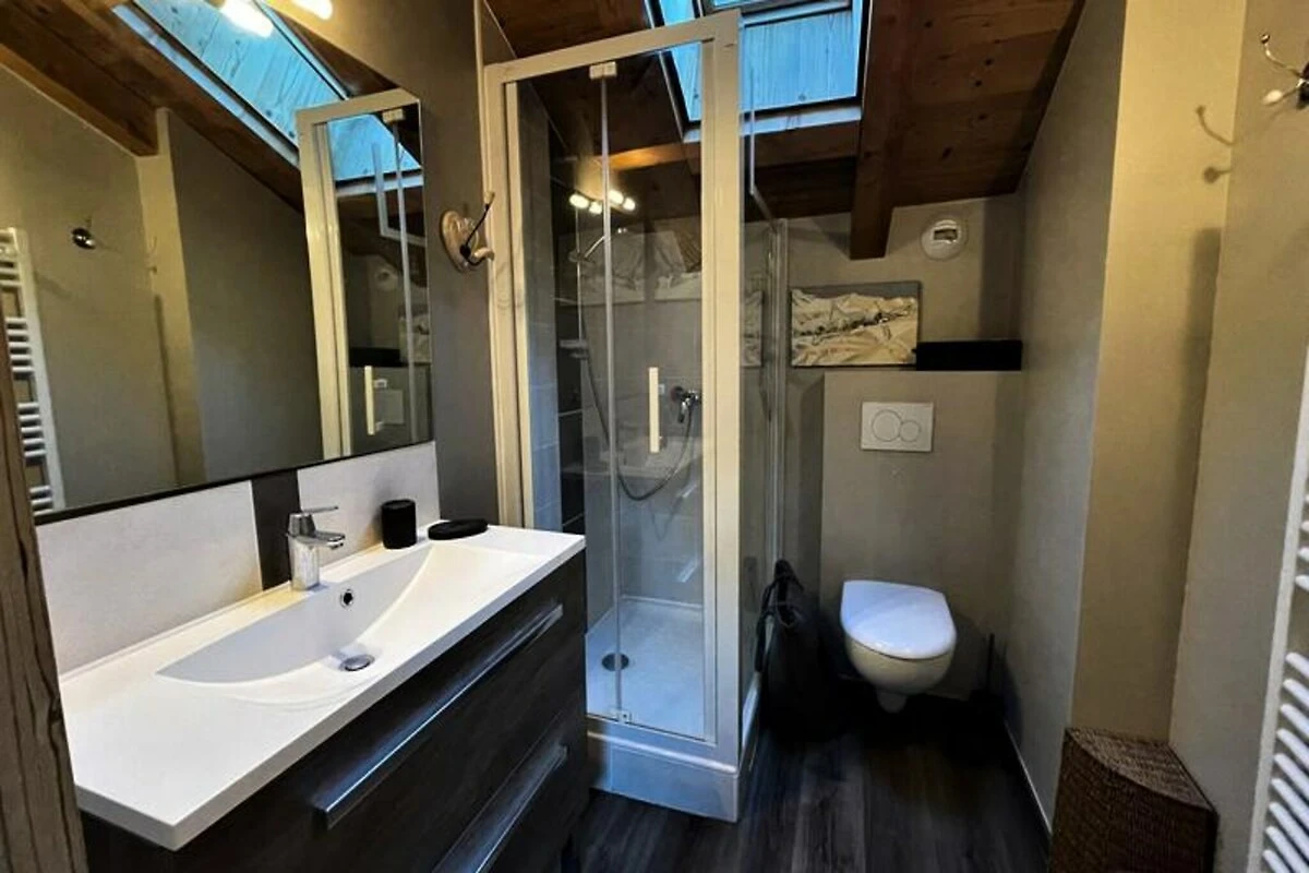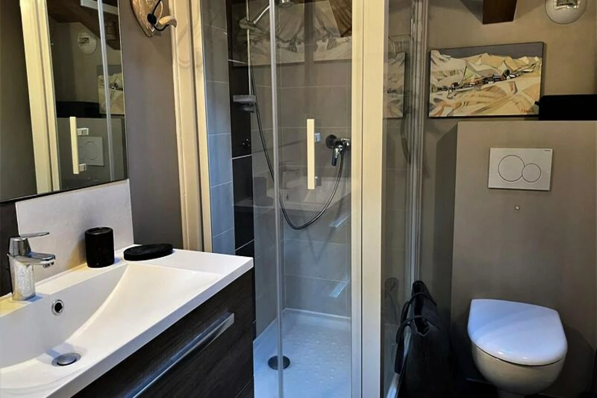 Questo accogliente chalet triplex si sviluppa su tre livelli e può ospitare comodamente da 4 a 5 persone. Il piano terra vi accoglie con un accogliente ingresso dotato di deposito per sci e scarponi, che conduce a una spaziosa camera matrimoniale e a un bagno con vasca e lavatrice/asciugatrice. Salite al primo piano, dove vi attendono una cucina a pianta aperta e una zona giorno, complete di elettrodomestici moderni come piano cottura in vetroceramica, forno, microonde e persino una crêpière per una vera esperienza culinaria francese. Il soggiorno, con il suo morbido divano, le poltrone e il sistema di intrattenimento, si apre su un balcone perfetto per il caffè del mattino o per il relax serale. L'ultimo piano ospita una seconda camera da letto matrimoniale, una nicchia con un letto singolo e un ulteriore bagno con doccia.