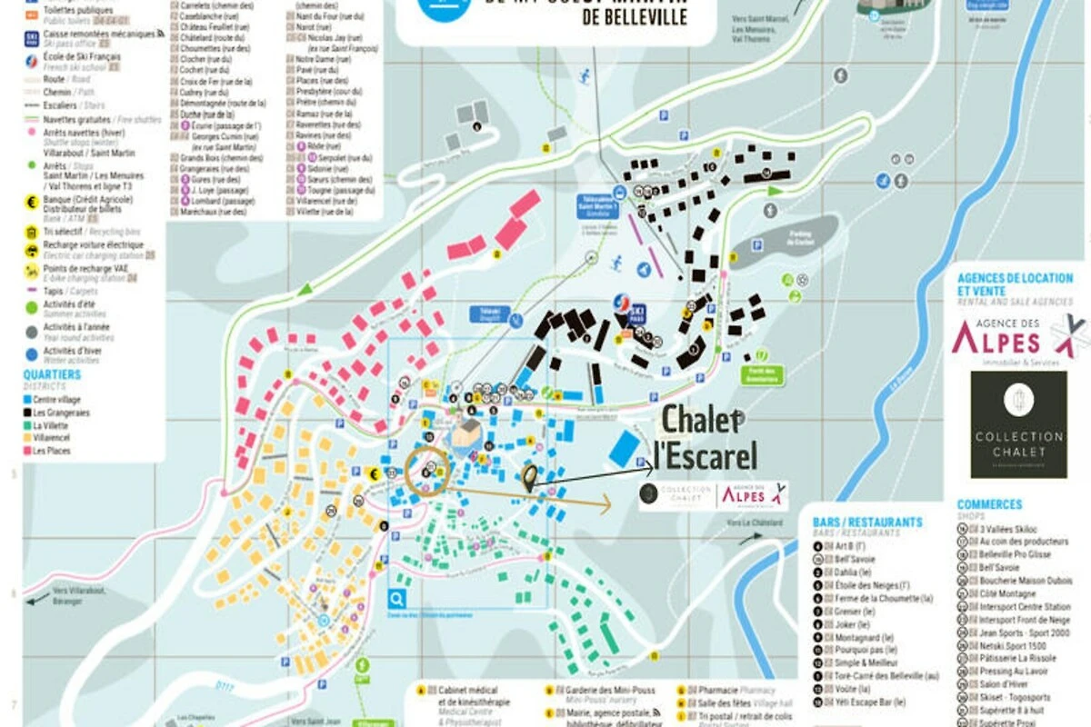 Nel cuore della pittoresca Saint Martin de Belleville, questo grazioso chalet bifamiliare in pietra e legno offre un perfetto connubio tra tradizione alpina e comfort moderno. A pochi passi dal centro del paese, vi permetterà di raggiungere facilmente piste da sci, negozi, ristoranti e servizi essenziali come la scuola di sci e l'asilo nido. Con l'impianto di risalita del centro del paese a soli 150 metri di distanza, le vostre avventure in montagna iniziano proprio a due passi da casa. Il balcone esposto a sud e il giardino privato offrono spazi tranquilli per immergersi nella vista mozzafiato sulla valle di Belleville, rendendo ogni momento indimenticabile.