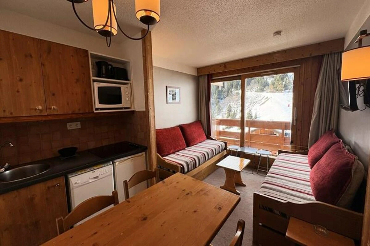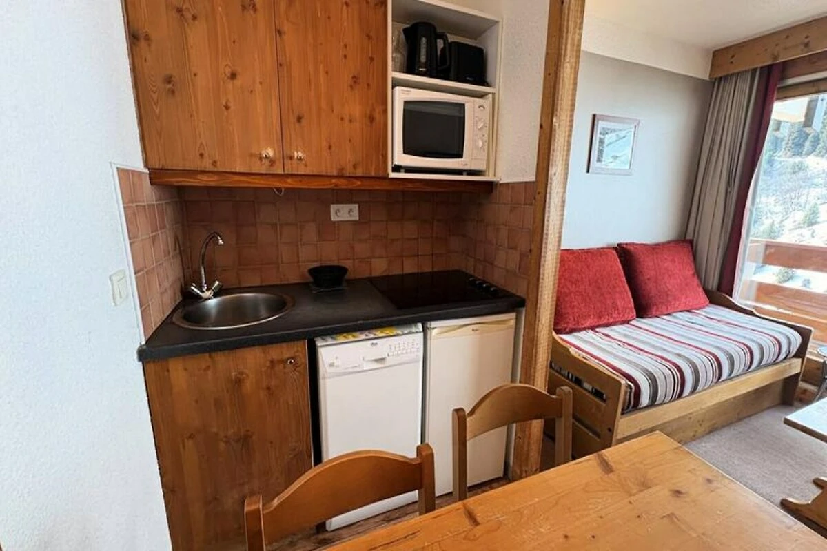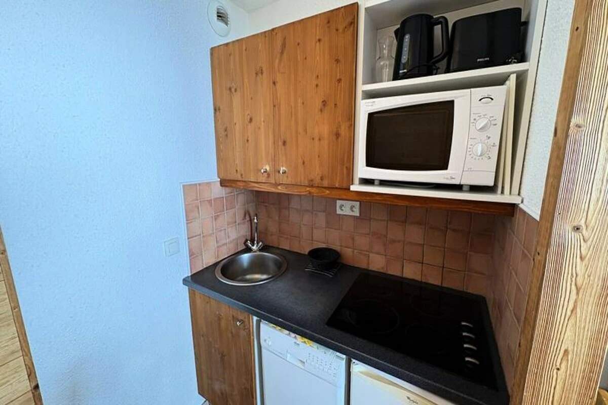 In posizione elevata, sopra gli splendidi paesaggi alpini di Méribel Mottaret, questo grazioso appartamento vi invita a vivere la magia delle Alpi francesi in ogni stagione. Con una vista mozzafiato dal suo balcone esposto a ovest, vi ritroverete immersi nella serenità della vita di montagna, godendovi la comodità di essere ai piedi delle piste. Che siate alla ricerca di emozionanti avventure sugli sci o tranquille escursioni estive, questa residenza è situata in una posizione perfetta per offrirvi tutto. \n\nInternamente, l'appartamento è progettato con cura per offrire comfort e funzionalità. Il luminoso soggiorno dispone di due comodi divani letto e di un televisore, creando uno spazio accogliente dove rilassarsi dopo una giornata di esplorazione. L'angolo cottura completamente attrezzato include piani cottura in vetroceramica, un forno a microonde con grill, una lavastoviglie e tutto il necessario per preparare deliziosi pasti o bevande calde. La camera da letto principale vanta un ampio letto matrimoniale, garantendo notti di riposo, mentre il bagno funzionale aggiunge praticità al vostro soggiorno. Ulteriori servizi come un armadietto per gli sci e un ascensore aumentano la vostra comodità, e il parcheggio coperto è disponibile su richiesta. \n\nIl residence Le Pralin è ideale per le famiglie, situato a pochi passi dalle piste e vicino all'asilo e al centro commerciale Châtelet. Negozi e il centro della località distano solo 300 metri, rendendo facile accedere a tutto ciò di cui avete bisogno. In inverno, la zona si trasforma in un paese delle meraviglie innevato, mentre l'estate porta sentieri vivaci, festival alpini e opportunità per esplorare i dintorni mozzafiato. \n\nChe siate qui per sciare, fare escursioni o semplicemente rilassarvi nella bellezza delle Alpi, questo appartamento offre un rifugio indimenticabile su misura per i vostri desideri.