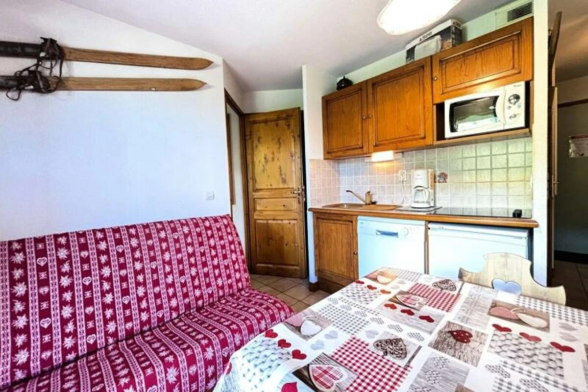 Immerso nello scenario mozzafiato delle Alpi francesi, questo grazioso appartamento nel residence Les Oursons offre un accogliente rifugio ai piedi delle piste da sci dell'Espace Diamant. Con accesso diretto a 192 km di piste interconnesse che si estendono su sei pittoresche località sciistiche, tra cui Notre Dame de Bellecombe, Flumet e Les Saisies, è una destinazione da sogno per sciatori di tutti i livelli. Che si tratti di sciare sulla neve fresca o di godersi dolci pendii, l'atmosfera familiare e la splendida vista alpina creano un'indimenticabile fuga invernale. Il residence è situato in posizione strategica vicino alla scuola di sci, il che lo rende ideale sia per famiglie che per principianti. All'interno, l'appartamento è progettato con cura per il comfort e la praticità. Può ospitare fino a sei persone e dispone di due camere da letto, una con letto matrimoniale e l'altra con letti a castello, e di un divano letto nel soggiorno. La cucina a pianta aperta è completamente attrezzata con piano cottura in vetroceramica, frigorifero, forno a microonde e lavastoviglie, per garantirvi tutto il necessario per preparare pasti abbondanti dopo una giornata sulle piste. Comfort moderni come Wi-Fi, TV a schermo piatto e garage privato chiuso aumentano la comodità, mentre l'armadietto per gli sci mantiene la vostra attrezzatura in ordine. Oltre allo sci, la regione si trasforma in un paradiso per gli amanti dell'aria aperta durante i mesi estivi. Esplorate sentieri escursionistici panoramici, percorsi per mountain bike o prendete la seggiovia del Mont Rond per una vista panoramica sul Monte Bianco. Per una giornata di relax, il lago Flumet e il centro ricreativo si trovano a soli 7 km di distanza e offrono attività per famiglie in un ambiente sereno. Con stazioni di ricarica per veicoli elettrici disponibili in tutti i villaggi della Val d'Arly, tra cui Notre Dame de Bellecombe, il vostro soggiorno sarà ecologico e senza pensieri. Che siate alla ricerca di emozionanti avventure alpine o di momenti di tranquillità nella natura, questo appartamento offre la base perfetta per scoprire la bellezza e il fascino delle Alpi francesi tutto l'anno.
