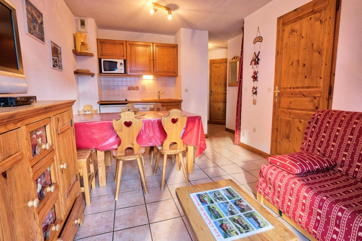 Immerso nello scenario alpino mozzafiato di Notre Dame de Bellecombe, questo grazioso appartamento nel residence Les Oursons offre un rifugio accogliente per famiglie e amici in cerca di avventura e relax. Grazie alla sua posizione privilegiata ai piedi delle piste del comprensorio sciistico Espace Diamant, potrete godere di un accesso diretto a 192 km di piste che collegano sei pittoresche località sciistiche. Che stiate sciando sulla neve fresca o muovendo i primi passi sugli sci, l'atmosfera accogliente e la varietà del terreno promettono momenti indimenticabili per tutti i livelli. Il balcone esposto a sud offre una vista mozzafiato sul fronte innevato del Mont Rond, invitandovi a immergervi nella serena bellezza delle montagne. Questo appartamento di 38 m², progettato con cura, può ospitare comodamente fino a sei persone. La disposizione comprende una camera da letto matrimoniale, una nicchia con letti a castello e un divano letto nel soggiorno, garantendo flessibilità per famiglie o gruppi. La cucina a pianta aperta è dotata di comfort moderni, tra cui piano cottura in vetroceramica, frigorifero, forno a microonde e lavastoviglie, rendendo la preparazione dei pasti un gioco da ragazzi. Dopo una giornata sulle piste, rilassatevi nell'accogliente zona giorno con TV o approfittate del Wi-Fi incluso per condividere le vostre avventure. Ulteriori comfort, come un armadietto per gli sci e un parcheggio privato esterno, arricchiscono il vostro soggiorno. Oltre allo sci, in estate la regione si trasforma in un paradiso per gli amanti dell'aria aperta. Esplorate sentieri escursionistici panoramici, emozionanti percorsi per mountain bike o prendete la seggiovia del Mont Rond per una vista panoramica sul Monte Bianco. Per le gite in famiglia, il lago di Flumet e il centro ricreativo sono raggiungibili in breve tempo in auto. Le stazioni di ricarica per veicoli elettrici nei villaggi della Val d'Arly contribuiscono alla comodità di esplorare la zona. Che siate alla ricerca di emozioni invernali o di tranquillità estiva, questo appartamento in stile montano è la base perfetta per creare ricordi indimenticabili nel cuore delle Alpi.