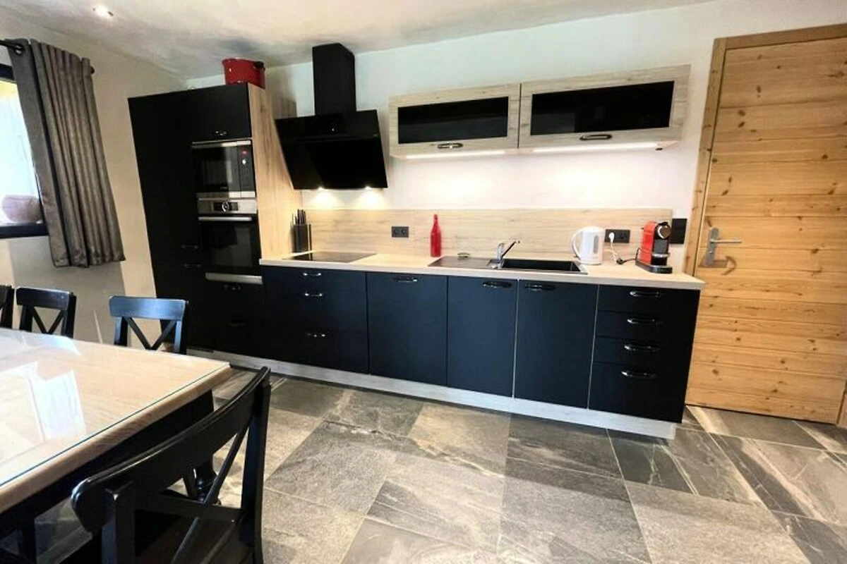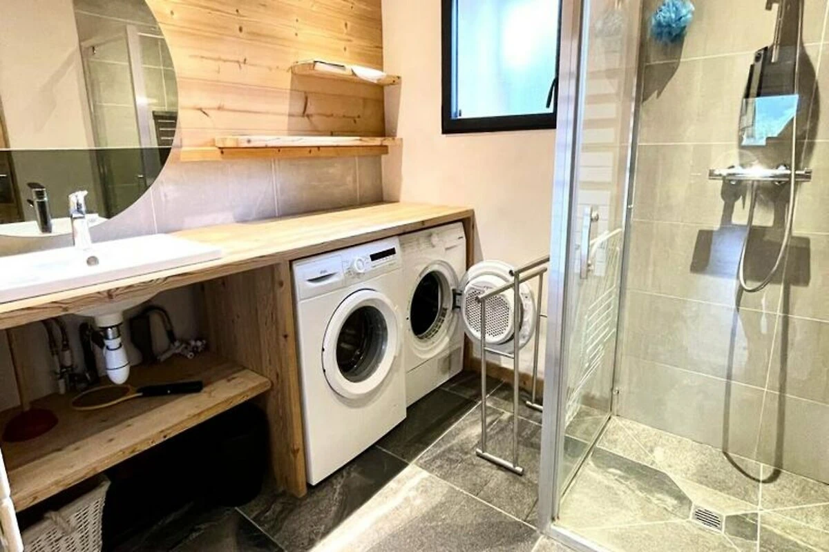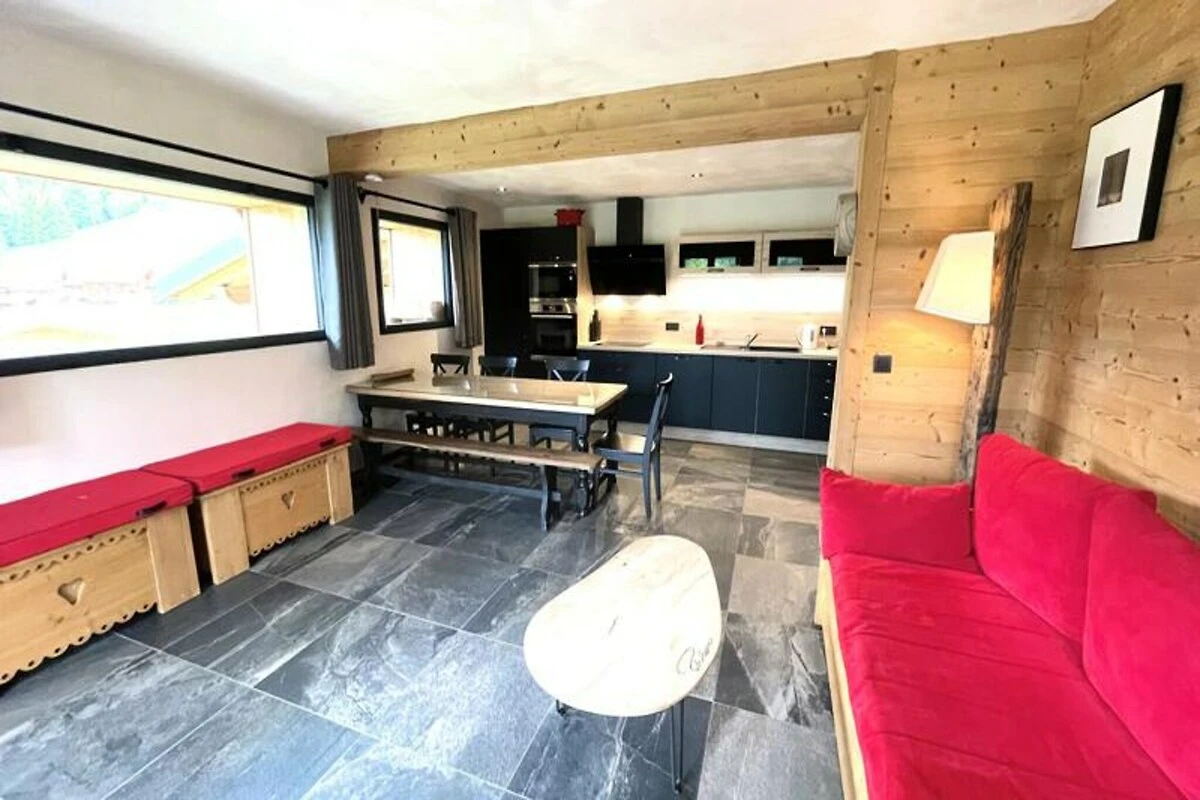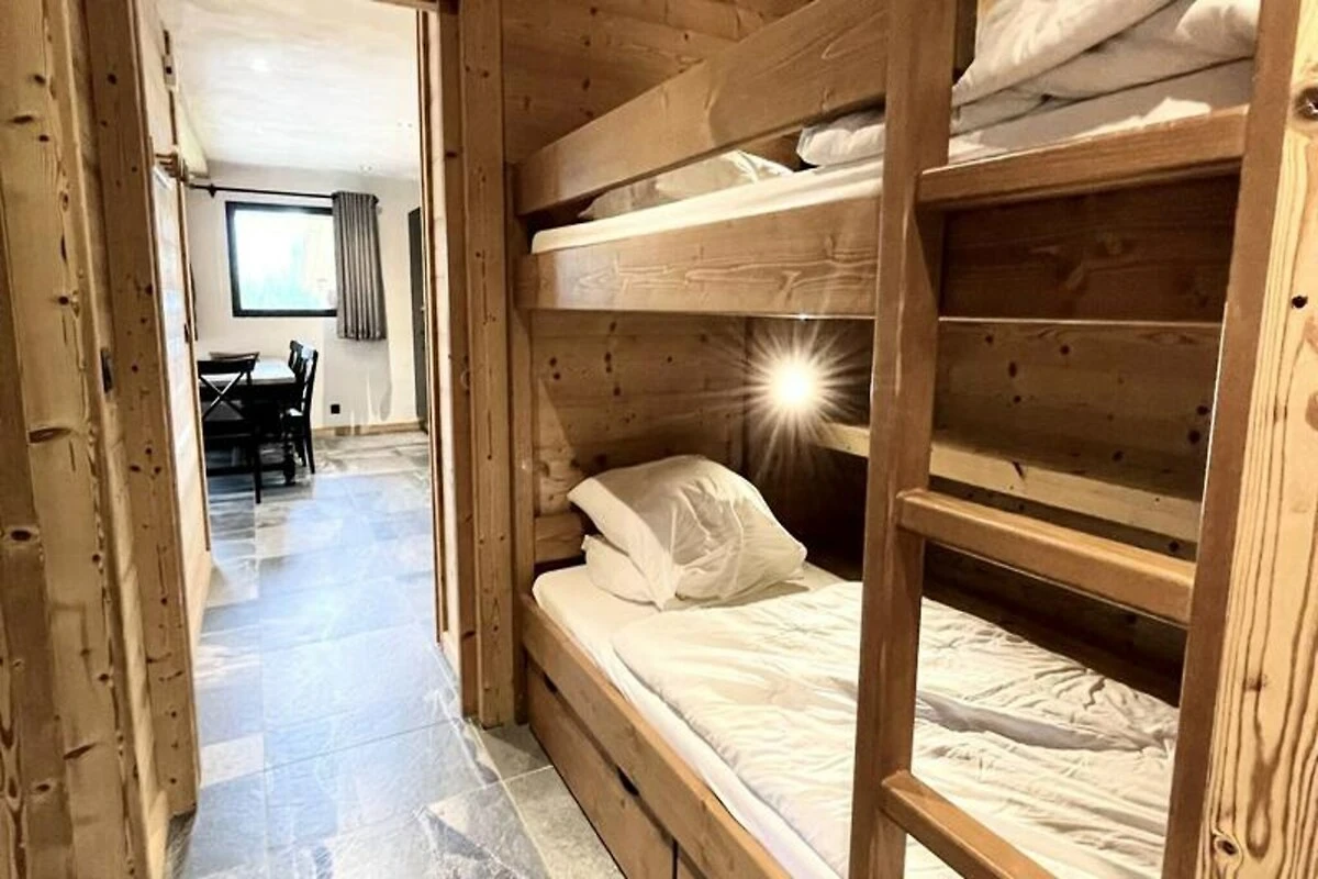 L'appartamento di 70 m², situato al piano giardino dello Chalet La Ferme du Cheloup, può ospitare comodamente fino a sei persone. La sua disposizione studiata con cura comprende un ampio soggiorno con TV, una cucina a pianta aperta attrezzata con elettrodomestici moderni e accoglienti zone notte: una camera da letto con bagno privato e doccia privata, una seconda camera da letto matrimoniale, una zona notte con letti a castello e un divano letto estraibile in soggiorno. Un bagno separato con lavatrice/asciugatrice e un'ampia terrazza rendono questa casa pratica e accogliente.