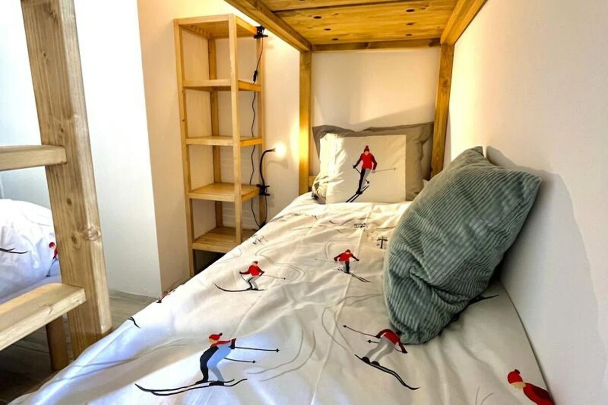 Immerso nella serena bellezza delle Alpi francesi, questo moderno appartamento duplex nel residence Le Cristal offre un perfetto mix di comfort e praticità per la vostra vacanza alpina. Situato a 1350 m di altitudine, il residence si trova direttamente ai piedi delle piste dell'Espace Diamant, il che lo rende la scelta ideale per gli amanti dello sci. Con la seggiovia del Mont Rond e la scuola di sci a pochi passi di distanza, le vostre giornate possono iniziare senza sforzo con discese emozionanti o esplorazioni panoramiche. Le terrazze esposte a nord-ovest offrono una vista mozzafiato sul Mont Charvin e sulle cime circostanti, immergendovi nella maestosa atmosfera alpina. L'appartamento si sviluppa su due livelli e può ospitare fino a sei persone. Al primo piano troverete una cucina completamente attrezzata con elettrodomestici moderni, un'accogliente zona soggiorno con TV e una zona pranzo che si apre sulla prima terrazza. Al piano superiore, due camere da letto dal design curato offrono comfort e flessibilità, una con letto matrimoniale e letti a castello, e l'altra con letto queen-size con accesso alla seconda terrazza. Un ampio bagno con doppio lavabo e lavatrice garantisce la massima praticità, mentre l'ampio spazio di archiviazione in tutto l'appartamento ne aumenta la funzionalità. \n\nIn estate, la regione si trasforma in un paradiso per gli amanti dell'aria aperta. La seggiovia del Mont Rond è in funzione tre giorni a settimana, portando i visitatori a godere di viste panoramiche sul Monte Bianco. Sentieri escursionistici e percorsi per mountain bike attraversano la zona, mentre il lago di Flumet, a soli 7 km di distanza, offre strutture ricreative per il divertimento in famiglia. Destinazioni vicine come Megève, Chamonix e Annecy offrono opportunità di esplorazione culturale, ristoranti raffinati e paesaggi mozzafiato. \n\nChe cerchiate l'avventura o la tranquillità, la posizione privilegiata di questo appartamento e i suoi servizi pensati per voi lo rendono una scelta eccezionale per fughe alpine tutto l'anno. Con Wi-Fi, parcheggio privato e armadietto per gli sci inclusi, il vostro soggiorno promette comfort e ricordi indimenticabili.