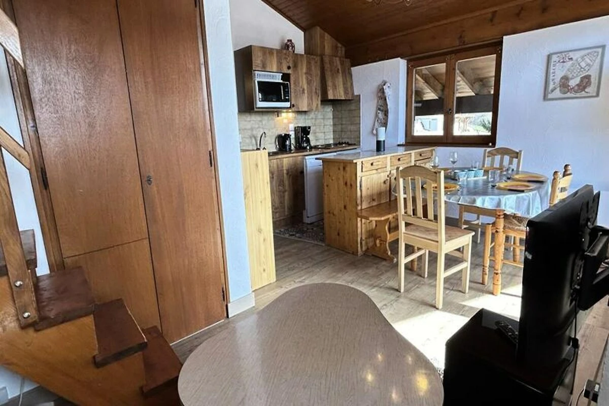 Circondato dalla serena bellezza delle Alpi francesi, questo grazioso appartamento con una camera da letto offre un rifugio accogliente per gli amanti dello sci e della natura. Situato al terzo piano, l'immobile vi invita ad abbracciare lo stile di vita alpino con i suoi interni caldi e il comodo accesso alle piste. Immaginate di svegliarvi con l'aria frizzante di montagna, uscire e attraversare la strada per raggiungere gli impianti di risalita di Reguet e la scuola di sci ESF, a pochi minuti di distanza. Che siate qui per gli sport invernali o per le escursioni estive, questo appartamento è la vostra porta d'accesso all'avventura. \n\nInternamente, lo spazio di 49 m² è progettato con cura per ospitare fino a sei persone. La camera da letto dispone di due letti singoli a castello, mentre una nicchia con un letto matrimoniale e un divano letto nel soggiorno offrono ulteriori opzioni. La cucina e la zona giorno a pianta aperta creano uno spazio accogliente per pasti condivisi e relax dopo una giornata sulle piste. Un bagno e una toilette separati garantiscono comfort e praticità, mentre il parcheggio privato e l'armadietto per gli sci aggiungono praticità al vostro soggiorno. A soli 500 metri dai negozi e dal centro di Notre-Dame-de-Bellecombe, troverete tutto ciò di cui avete bisogno a portata di mano. Esplorate i ristoranti locali, fate scorta di beni di prima necessità o semplicemente immergetevi nel fascino di questo pittoresco villaggio alpino. In estate, la regione si trasforma in un paradiso per escursionisti e ciclisti, con sentieri che si snodano attraverso paesaggi mozzafiato. Che siate alla ricerca di emozionanti giornate sugli sci o tranquille serate accanto al fuoco, questo appartamento è la base perfetta per creare indimenticabili ricordi alpini. Gli animali domestici sono benvenuti, il che lo rende la scelta ideale per famiglie e gruppi che desiderano godersi la montagna insieme.