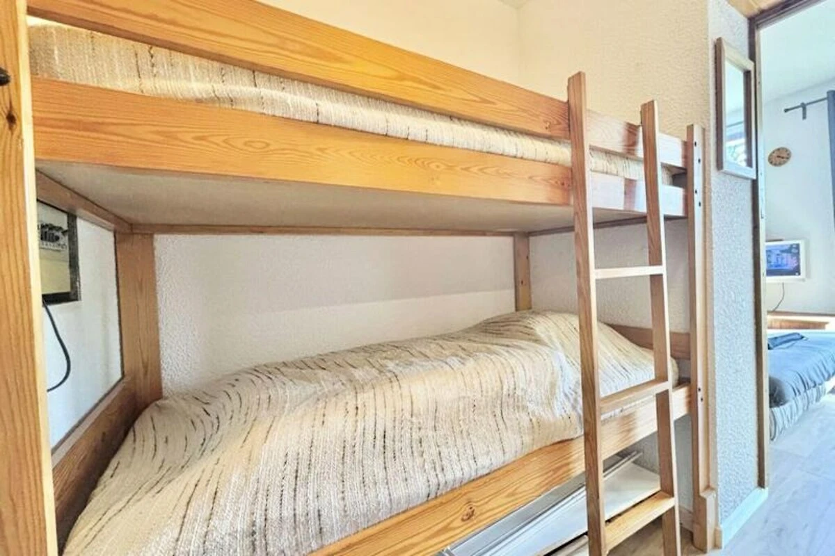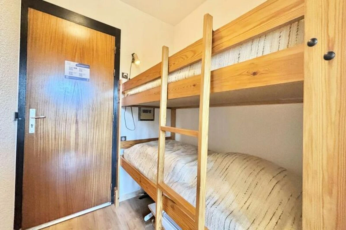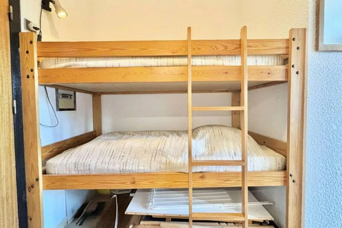 Compatto ma progettato con cura, il monolocale di 19 m² dispone di un accogliente soggiorno con un comodo divano letto, un pratico angolo cottura per preparare pasti abbondanti e un bagno con tutto il necessario. L'ingresso include due letti a castello, ideali per famiglie o piccoli gruppi, sebbene il letto superiore non sia adatto a bambini di età inferiore ai sei anni. Un armadietto per gli sci garantisce che la vostra attrezzatura sia sempre pronta, mentre il parcheggio esterno non riservato aggiunge praticità al vostro soggiorno.
