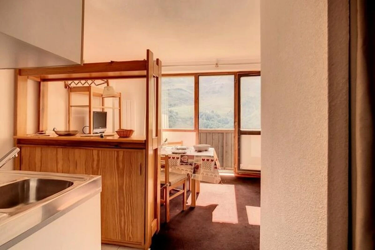 Situato in posizione elevata sopra il tranquillo quartiere di Preyerand, questo grazioso monolocale vi invita a vivere la magia di Les Menuires, con le piste a due passi da casa. Immaginate di svegliarvi con l'aria frizzante di montagna e di uscire sul vostro balcone esposto a sud-est, dove il sole proietta un bagliore dorato sulle cime innevate. Che siate qui per emozionanti avventure sugli sci o tranquille fughe alpine, questo accogliente rifugio è la vostra porta d'accesso alle meraviglie delle Alpi francesi. Con la funivia gratuita di Preyerand che vi collega direttamente al vivace quartiere della Croisette, la comodità è a pochi minuti di distanza. In funzione tutti i giorni dalle 8:00 alle 23:00, garantisce un facile accesso a servizi, biglietteria degli impianti di risalita e delizie après-ski. All'interno, il monolocale di 24,50 m² è progettato con cura per ospitare fino a quattro persone. La zona giorno dispone di un comodo divano letto per due, completato da un televisore e un lettore DVD per serate intime. Una zona notte separata offre letti a castello e ampio spazio per riporre gli oggetti, rendendola ideale per famiglie o gruppi affiatati. La cucina è completamente attrezzata con elettrodomestici moderni, tra cui un forno multifunzione, una lavastoviglie e una macchina per il caffè, per permettervi di preparare pasti abbondanti dopo una giornata sulle piste. Il bagno è dotato di doccia e c'è un WC separato per una maggiore comodità. Les Menuires è più di una semplice destinazione sciistica; è un vivace villaggio alpino con attività e attrazioni per ogni stagione. Dalle discese entusiasmanti alle tranquille escursioni, questo monolocale vi mette al centro di tutto. Con coperte fornite, accesso Wi-Fi a pagamento e divieto di animali domestici, ogni dettaglio è stato curato per un soggiorno confortevole. Che siate alla ricerca di avventura o relax, questo rifugio di montagna promette ricordi indimenticabili nelle incantevoli Alpi francesi.