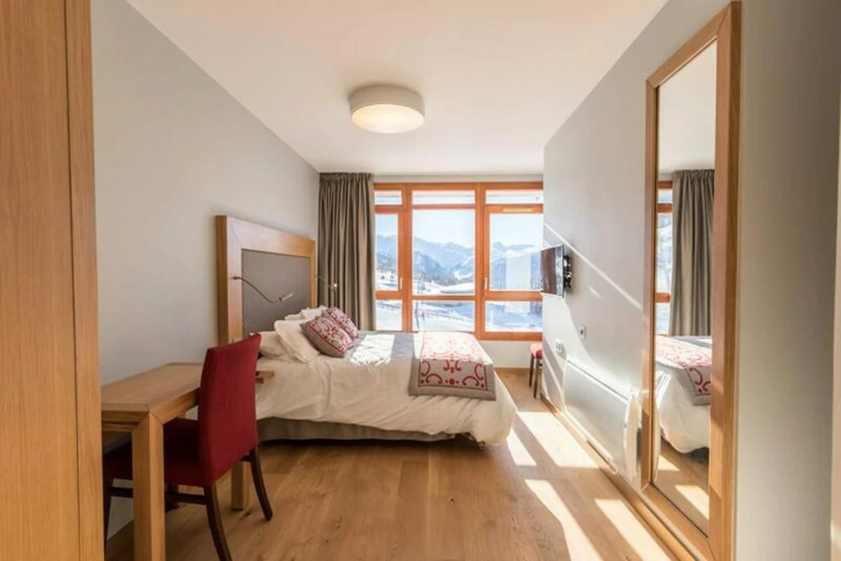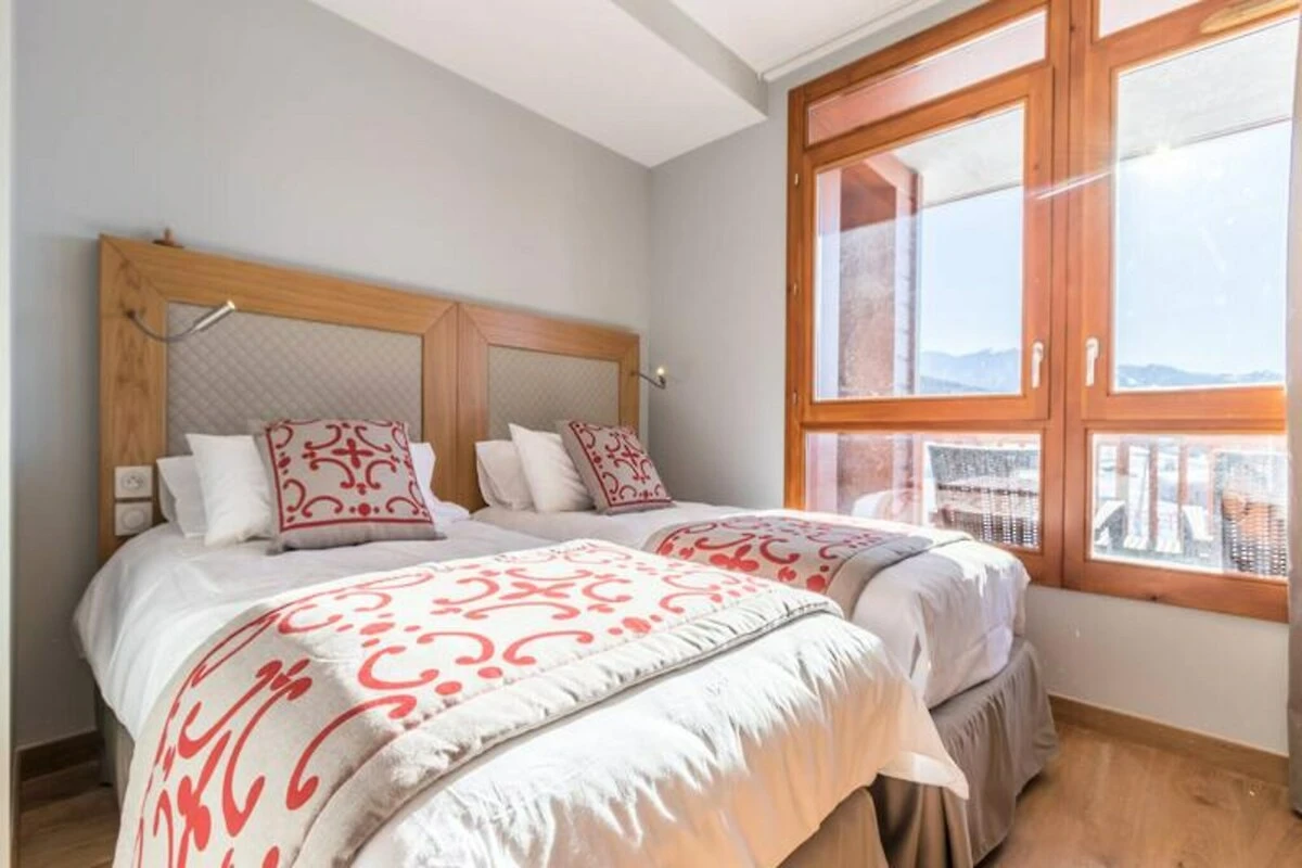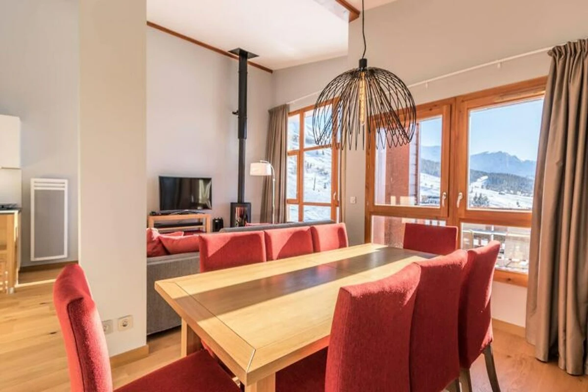 Situato in posizione dominante sulla pittoresca valle della Tarentaise, questo lussuoso appartamento duplex nel prestigioso residence Les Monarques offre un rifugio alpino senza pari. Con viste mozzafiato a sud-ovest e accesso diretto al comprensorio sciistico Paradiski, questa proprietà di 107 m² combina l'eleganza moderna con il fascino della vita di montagna. Che siate qui per gli sport invernali o per le escursioni estive, l'atmosfera serena e i servizi premium promettono un soggiorno indimenticabile. Immaginate di rilassarvi nella spa o di fare un tuffo rinfrescante in piscina dopo una giornata di avventure, circondati dalle maestose vette delle Alpi francesi. L'appartamento può ospitare comodamente fino a otto persone in quattro camere da letto, tra cui una suite padronale con bagno privato. La zona giorno open space dispone di un accogliente camino, una cucina completamente attrezzata e un elegante salotto, perfetto per serate rilassanti. Ulteriori comfort come il Wi-Fi, un impianto Hi-Fi Bose e un parcheggio coperto garantiscono un'esperienza impeccabile. L'attenta fornitura di asciugamani, letti preparati all'arrivo e pulizie di fine soggiorno aggiunge un tocco di servizio da hotel alla vostra vacanza. \n\nSituato nell'esclusiva zona di Edenarc au Chantel, il residence vanta un accesso diretto alle piste da sci in inverno e la vicinanza a un campo da golf in estate. Nelle vicinanze, troverete la Nama Springs Spa, negozi di alimentari gourmet e la funivia Dahu, che vi collega al vivace centro turistico di Arc 1800 in pochi minuti. Un servizio navetta gratuito garantisce una facile esplorazione dei villaggi e delle attrazioni circostanti. \n\nChe siate alla ricerca di piste da brivido, tranquilli sentieri escursionistici o semplicemente di un momento di relax nella spa, questo residence di lusso è la vostra porta d'accesso al meglio di Les Arcs. Abbracciate la magia delle montagne e create ricordi che dureranno una vita.