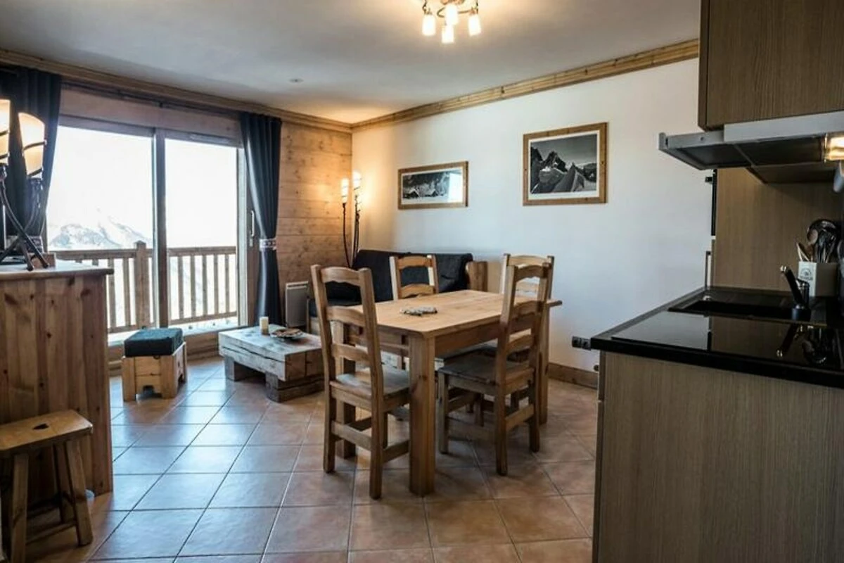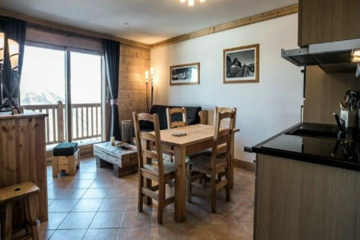 Situato nel tranquillo villaggio di Le Chantel a Les Arcs 1800, questo elegante appartamento con 2 camere da letto offre un rifugio tranquillo con vista mozzafiato sul Monte Bianco. Immagina di svegliarti con le maestose vette e di accedere direttamente alle piste da sci da questo residence con accesso diretto alle piste. La proprietà fa parte del prestigioso complesso L'Iseran, che vanta 46 appartamenti di lusso, una piscina interna riscaldata e un solarium per il massimo relax dopo una giornata di avventure alpine. Che siate qui per gli sport invernali o per le escursioni estive, questo residence offre un ambiente idilliaco per la vostra fuga in montagna. L'appartamento si estende su 44 metri quadrati e può ospitare comodamente fino a sei persone. La sua disposizione ben studiata include una moderna cucina attrezzata con piano cottura in vetroceramica, lavastoviglie, frigorifero, forno ed elettrodomestici essenziali come tostapane e bollitore. L'accogliente soggiorno dispone di un divano letto e di una TV, perfetti per rilassarsi dopo una giornata attiva. La camera da letto principale include un letto matrimoniale e un bagno privato con doccia, mentre la seconda camera offre due letti singoli. Servizi aggiuntivi come lavatrice/asciugatrice, Wi-Fi e armadietto per gli sci garantiscono comodità e comfort durante tutto il soggiorno. Gli ospiti possono inoltre usufruire di un parcheggio coperto e di una serie di servizi inclusi come asciugamani, lenzuola e pulizia di fine soggiorno. Situato a pochi minuti dal centro del resort, il residence è ben collegato tramite la funivia Dahu e il servizio navetta gratuito tra i resort, che facilitano l'accesso alla scuola di sci ESF, ai negozi e ai ristoranti. Il vicino ristorante Voga Goga e il negozio di alimentari gourmet aggiungono un tocco di delizia culinaria al vostro soggiorno. In estate, esplorate il leggendario Parco Nazionale della Vanoise o godetevi i sentieri escursionistici che si snodano attraverso la natura incontaminata. Che siate alla ricerca di emozionanti giornate sugli sci sui 425 chilometri di piste di Paradiski o di momenti di tranquillità circondati dalla bellezza alpina, questo appartamento offre il perfetto mix di lusso, comodità e fascino. Vivete la magia di Les Arcs e create ricordi indimenticabili in questo paradiso montano.
