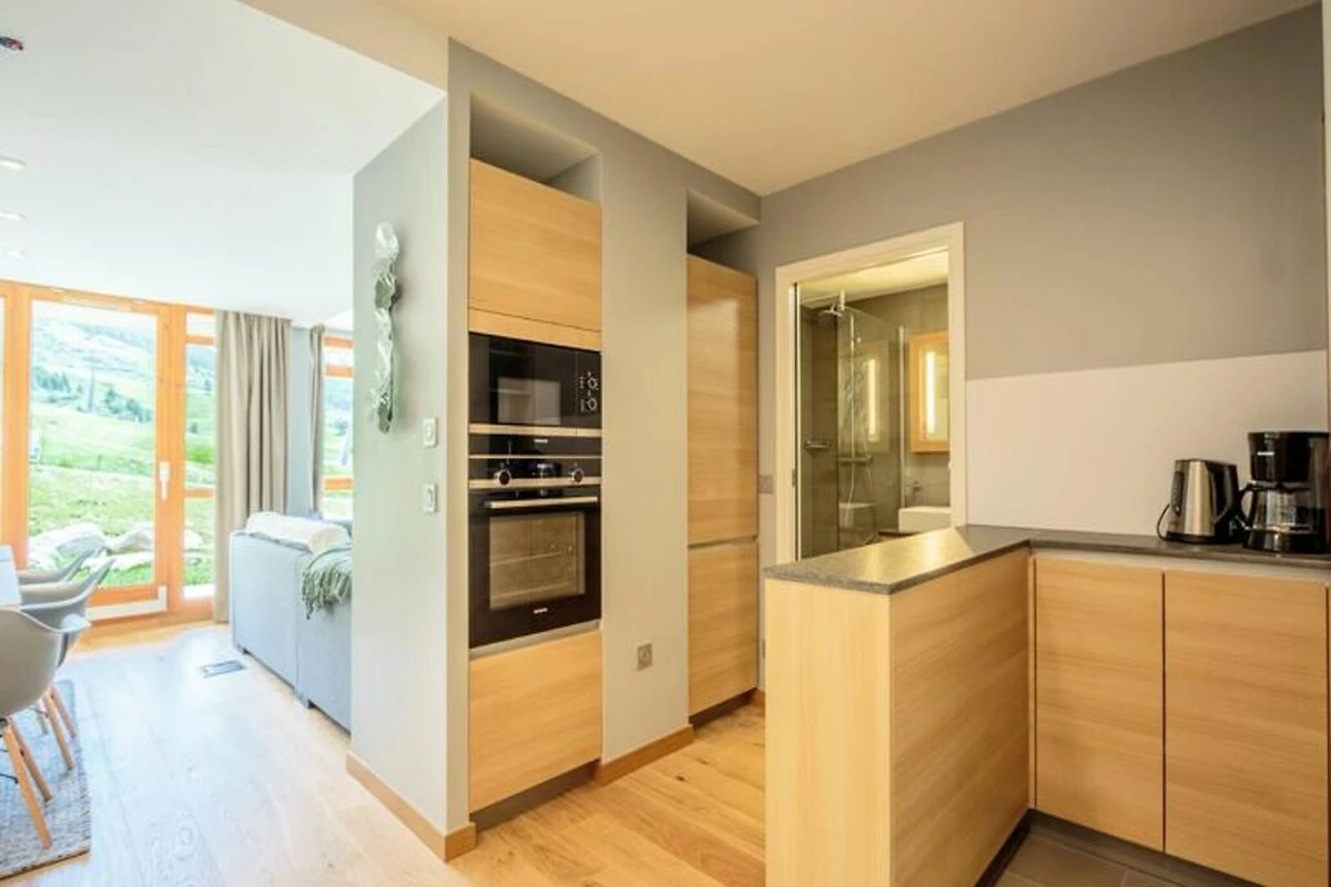In posizione elevata, sopra il vivace Arc 1800, questo elegante appartamento a 4 stelle nel residence Les Monarques offre una lussuosa fuga alpina con accesso diretto alle piste e viste mozzafiato dalla sua terrazza esposta a sud. Che siate qui per sfrecciare sui 425 km di piste incontaminate di Paradiski o per godervi le escursioni estive nel leggendario Parco Nazionale della Vanoise, questa proprietà è la soluzione perfetta per avventure in ogni periodo dell'anno. Il residence vanta servizi di alta qualità, tra cui una piscina, una spa con hammam, sauna e jacuzzi, nonché una sala fitness per garantire relax e rigenerazione dopo una giornata attiva in montagna. Con una superficie di 85 metri quadrati, l'appartamento può ospitare comodamente fino a sei persone in tre camere da letto progettate con cura, tra cui una suite padronale con bagno privato. La zona giorno open space invita a rilassarsi con comode sedute, un impianto Hi-Fi Bose e moderne opzioni di intrattenimento. La cucina completamente attrezzata è dotata di elettrodomestici di alta qualità come lavastoviglie, forno, microonde e macchina da caffè Nespresso, per preparare facilmente pasti e spuntini. Ulteriori comfort includono Wi-Fi, un armadietto per gli sci e un parcheggio coperto. Situato nell'esclusiva zona di Le Chantel, il residence è a pochi minuti dalla Nama Springs Spa di Edenarc, dal negozio di alimentari gourmet e dalla funivia Dahu, che collega al fronte innevato e al centro del resort Arc 1800 in meno di tre minuti. Un servizio navetta gratuito nelle vicinanze offre un facile accesso ai vivaci ristoranti, negozi e locali après-ski del villaggio. In estate, il campo da golf e i sentieri panoramici sono proprio a portata di mano. Che siate alla ricerca di emozionanti sport invernali, di tranquilli paesaggi estivi o di rilassanti giornate alla spa, questo appartamento offre il perfetto mix di comfort, stile e praticità per un'indimenticabile vacanza in montagna.